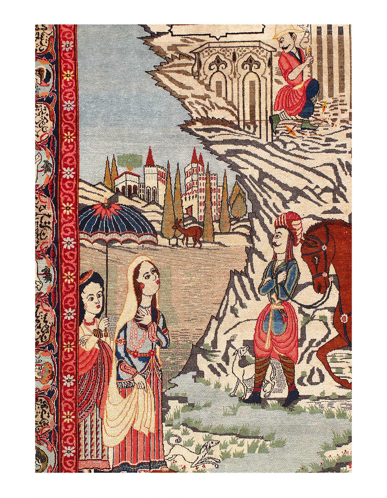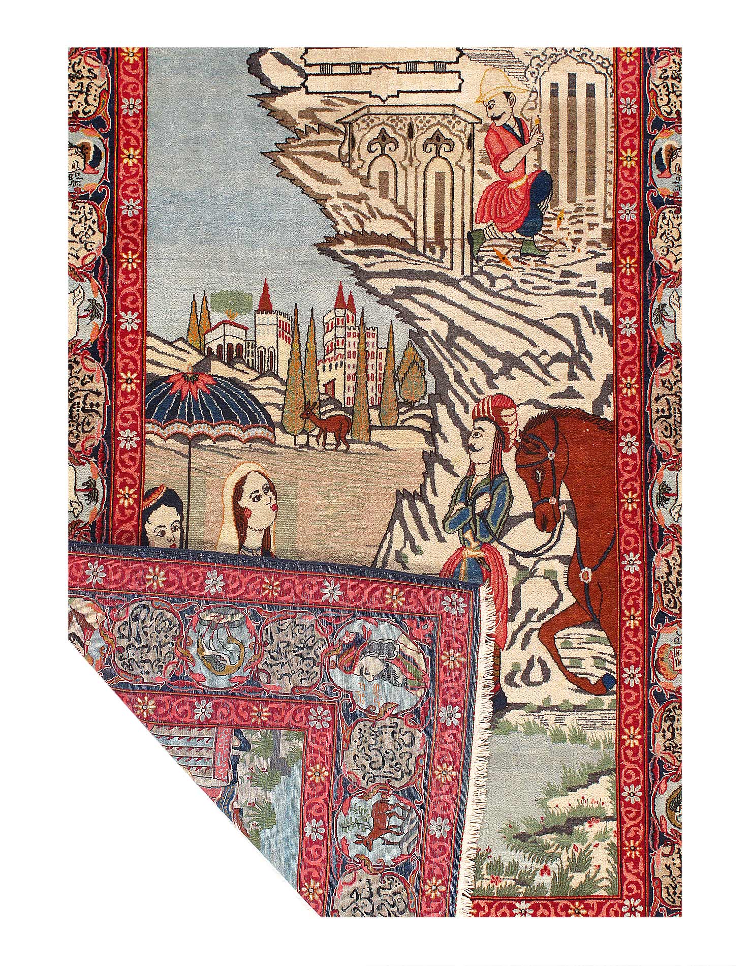 The rug features a pictorial pattern that is both unique and eye-catching, making it the perfect conversation starter. Its hand-knotted weave adds texture and depth to the design, creating a rug that is both beautiful and functional. Whether you're looking for a statement piece for your living room or a cozy accent for your bedroom, this rug is sure to exceed your expectations.