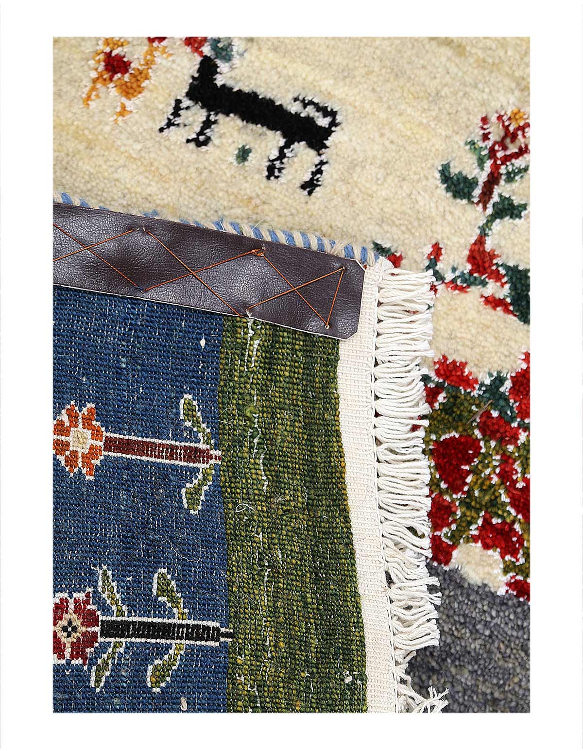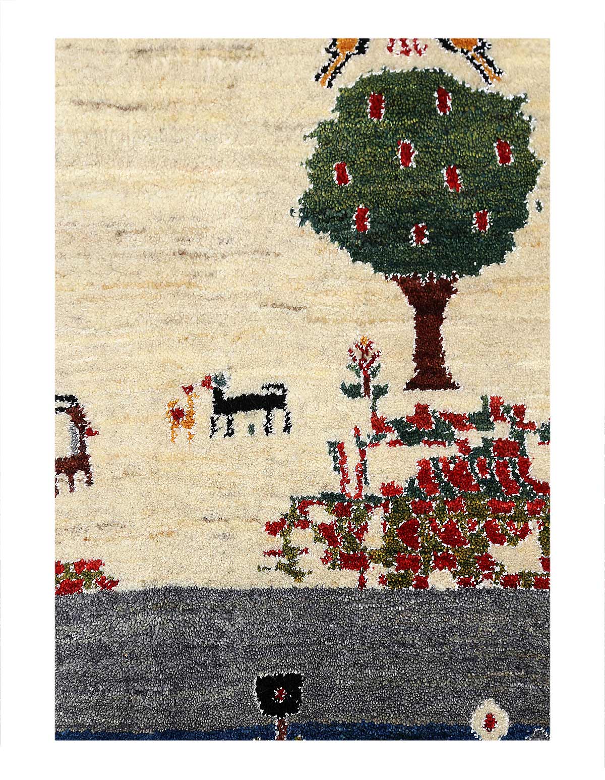 The word “Gabbeh” literally translates to “in the rough,” and it is an accurate description of this style of Persian rug. Gabbeh carpets are woven on makeshift ground looms constructed both of materials that are kept and hauled for long distances by the nomadic tribel, and also of materials that are found at each site where the tribe sets up camp. Due to the fact that part of the loom must be found at each site, a wide variety is introduced. Thus, these rugs are usually somewhat irregular in shape. But, for what they lack in perfectly uniform shape they more than make up for in character, durability and uniqueness.