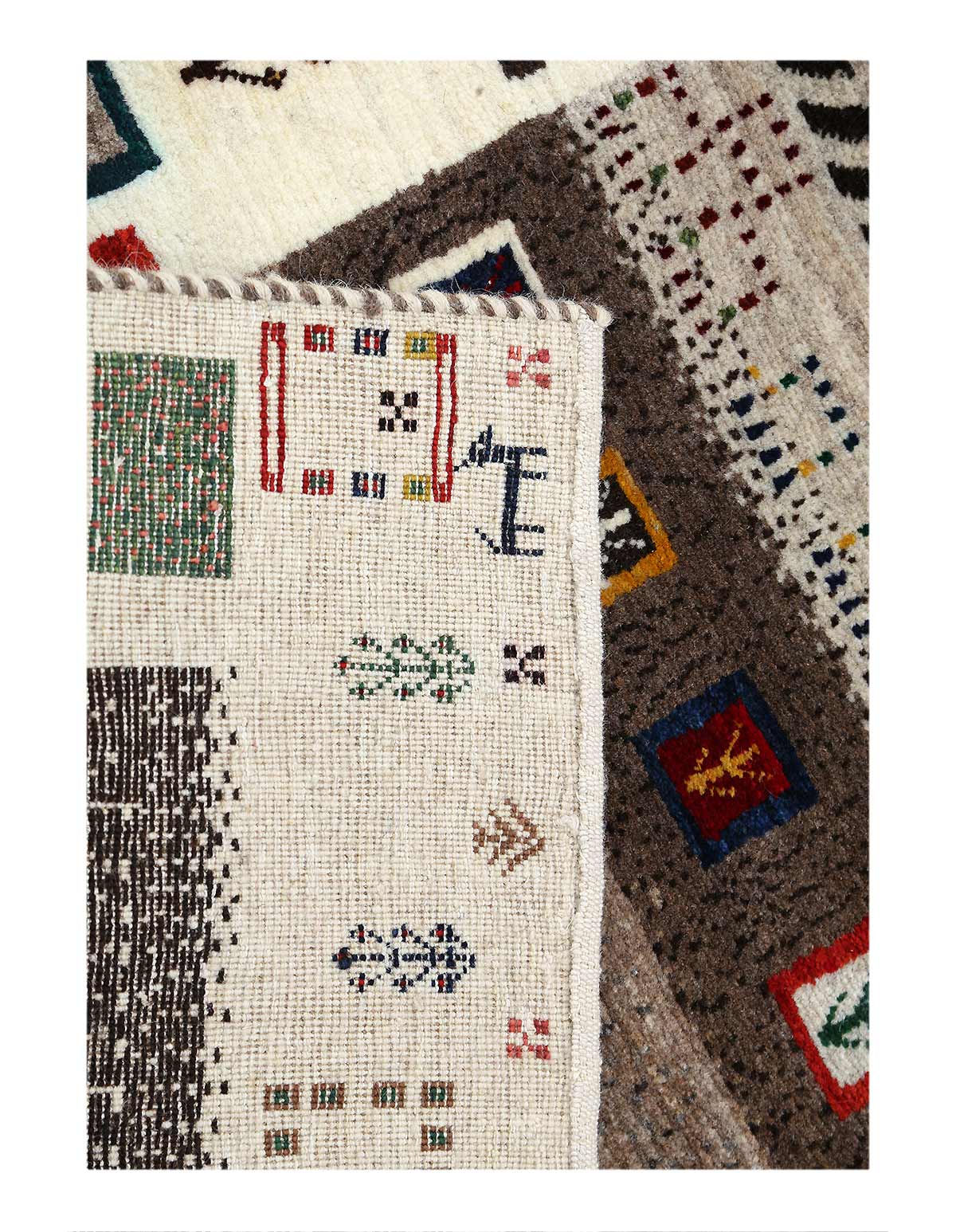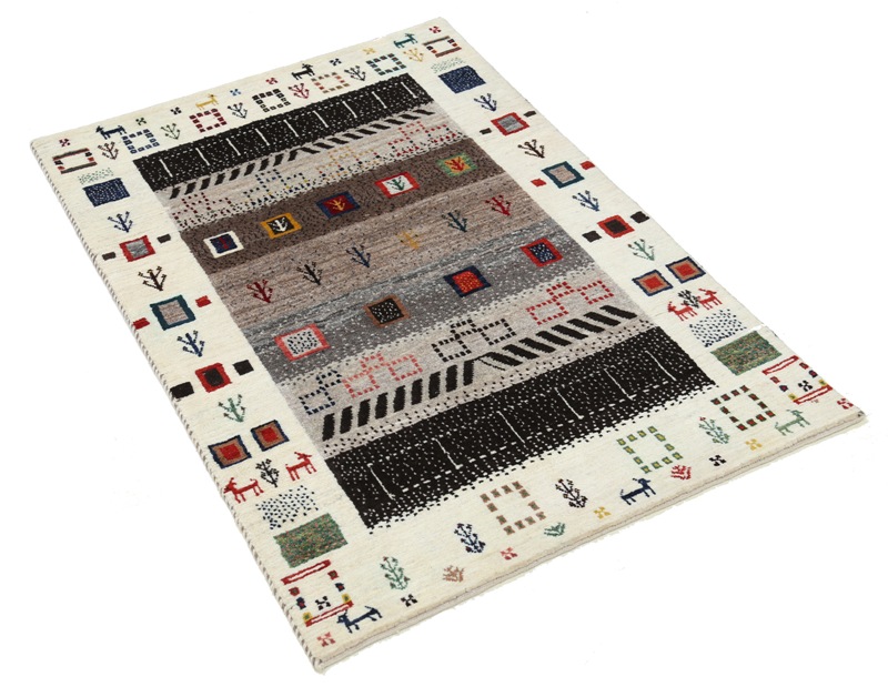 A Gabbeh is a handmade Persian rug which were traditionally woven by Qashqai and Luri weavers in Iran. These rugs are and were simple, whimsical or modern in design, often using geometric and stylized human, animal and plant forms.