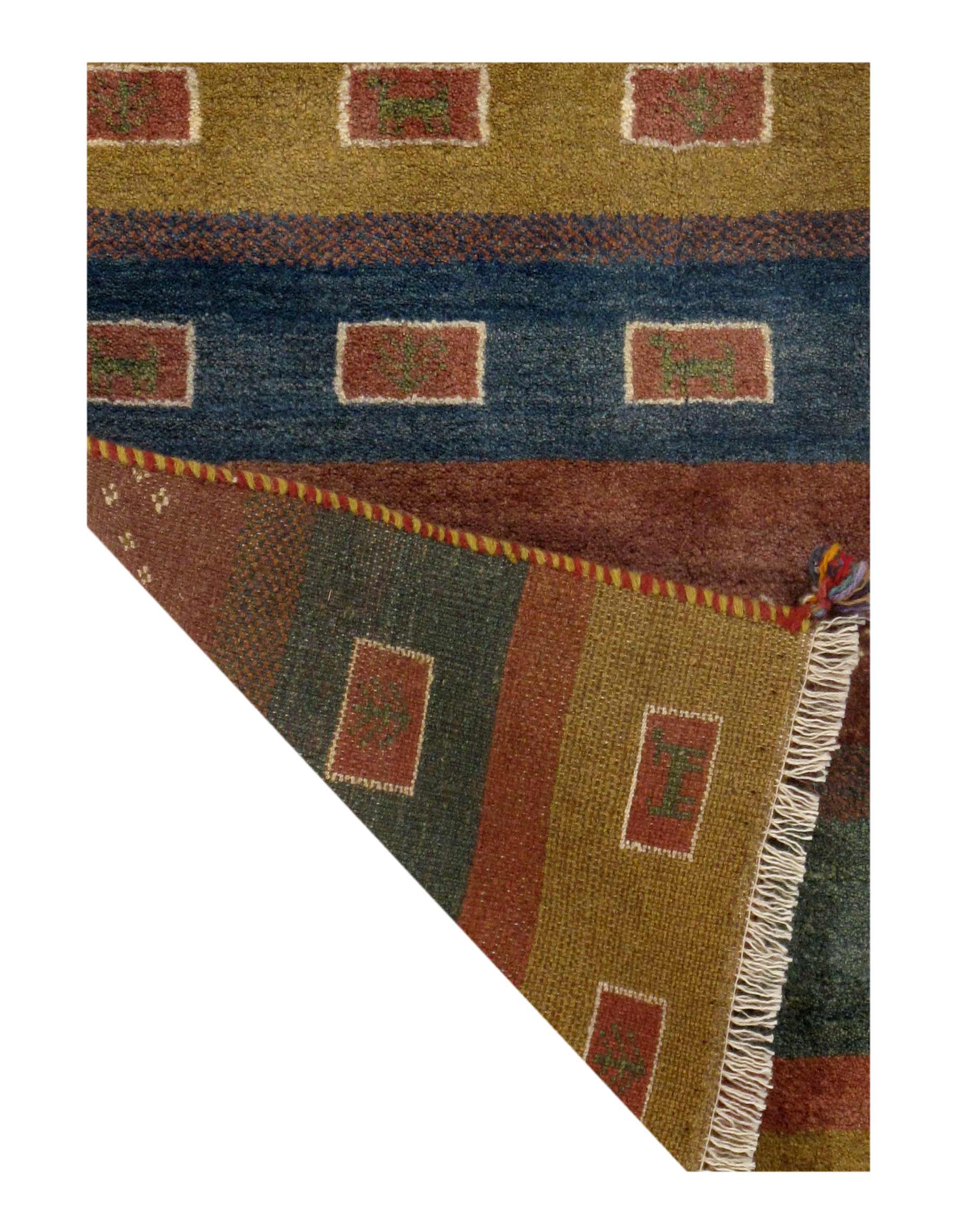 Gabbeh rugs are made by the nomadic Qashqai tribes of southern Iran. They are rough cut and long piled rugs of rich color and best quality wool. They are sometimes referred to by the heritage of the specific tribe by which they are woven, such as “a Lori rug,” or by the name of the city in which they are most often traded, such as “a Shiraz rug” or “a Shiraz Gabbeh.”
