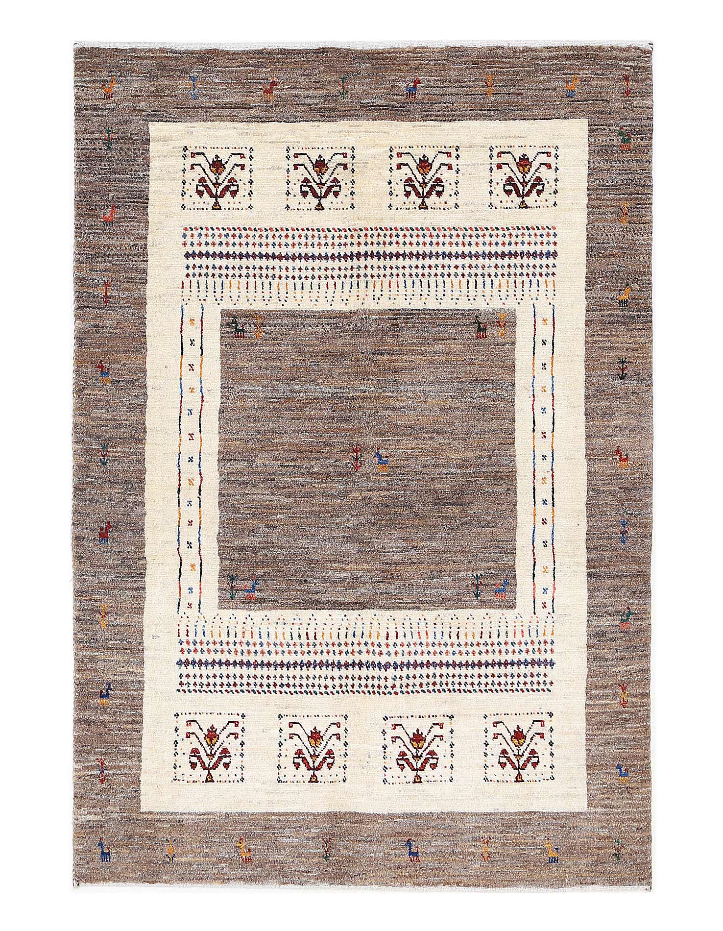 Gabbeh rugs are made by the nomadic Qashqai tribes of southern Iran. They are rough cut and long piled rugs of rich color and best quality wool. They are sometimes referred to by the heritage of the specific tribe by which they are woven, such as “a Lori rug,” or by the name of the city in which they are most often traded, such as “a Shiraz rug” or “a Shiraz Gabbeh.”