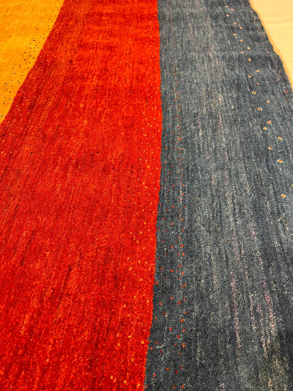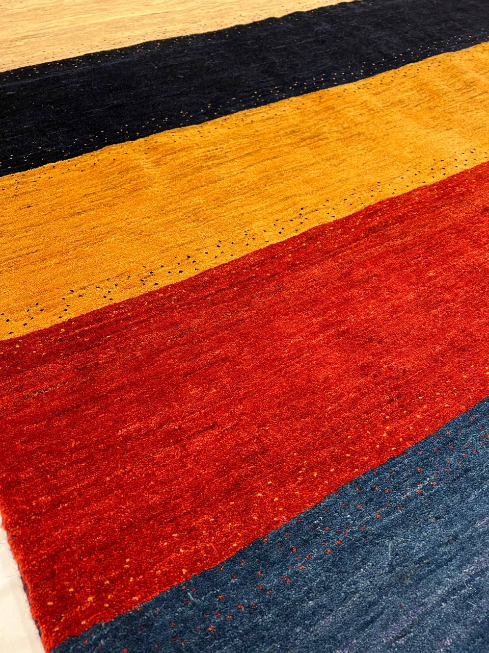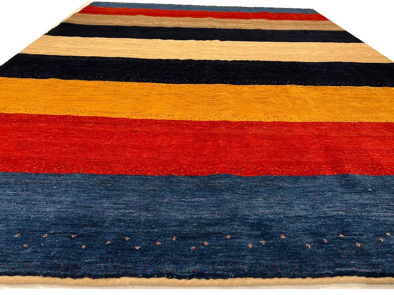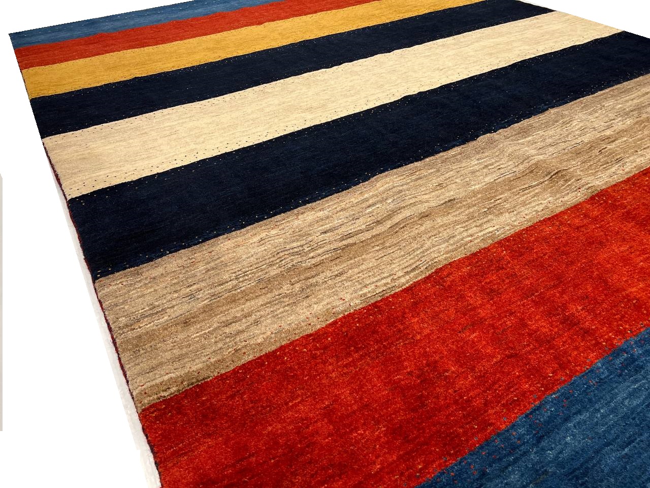 A Gabbeh is a handmade Persian rug which were traditionally woven by Qashqai and Luri weavers in Iran. These rugs are and were simple, whimsical or modern in design, often using geometric and stylized human, animal and plant forms.