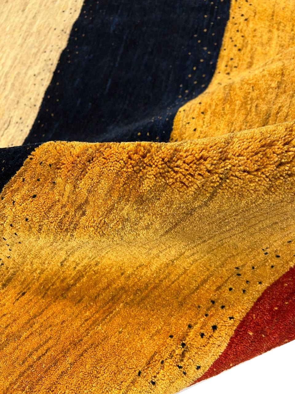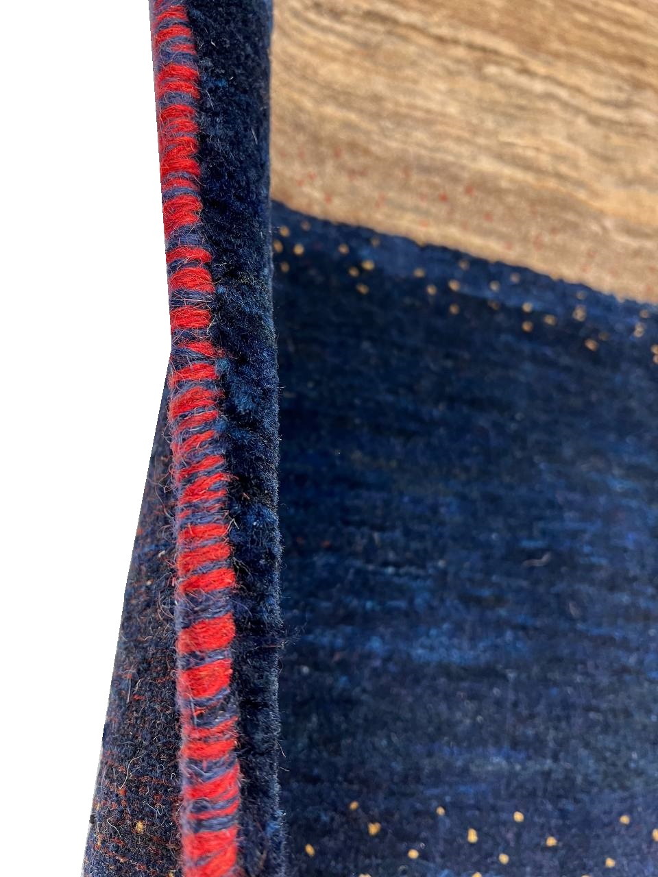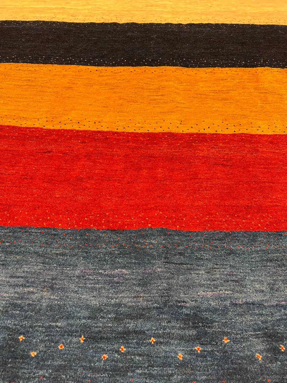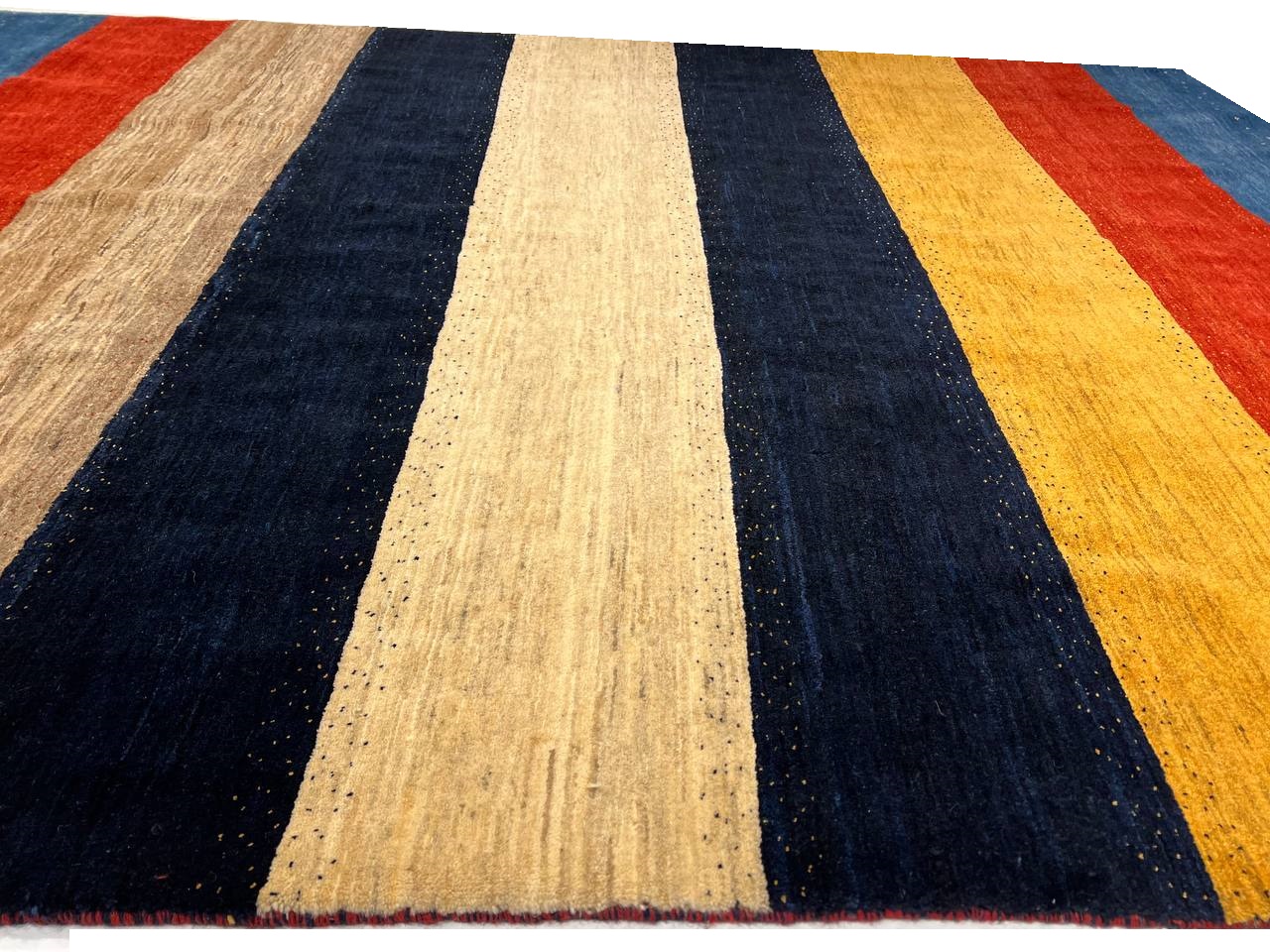 A Gabbeh is a handmade Persian rug which were traditionally woven by Qashqai and Luri weavers in Iran. These rugs are and were simple, whimsical or modern in design, often using geometric and stylized human, animal and plant forms.