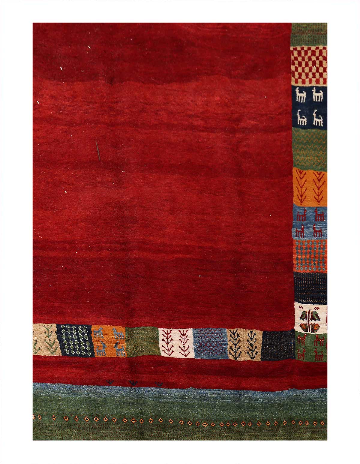 Gabbeh rugs are made by the nomadic Qashqai tribes of southern Iran. They are rough cut and long piled rugs of rich color and best quality wool. They are sometimes referred to by the heritage of the specific tribe by which they are woven, such as “a Lori rug,” or by the name of the city in which they are most often traded, such as “a Shiraz rug” or “a Shiraz Gabbeh.”