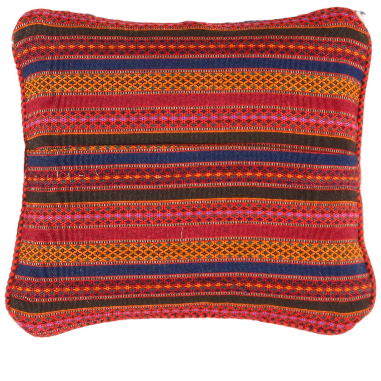 The word “Gabbeh” literally translates to “in the rough,” and it is an accurate description of this style of Persian rug. Gabbeh carpets are woven on makeshift ground looms constructed both of materials that are kept and hauled for long distances by the nomadic tribel, and also of materials that are found at each site where the tribe sets up camp. Due to the fact that part of the loom must be found at each site, a wide variety is introduced. Thus, these rugs are usually somewhat irregular in shape. But, for what they lack in perfectly uniform shape they more than make up for in character, durability and uniqueness.This Gabbeh pillow is made of high-quality LAMBS WOOL The piece was crafted with good workmanship.