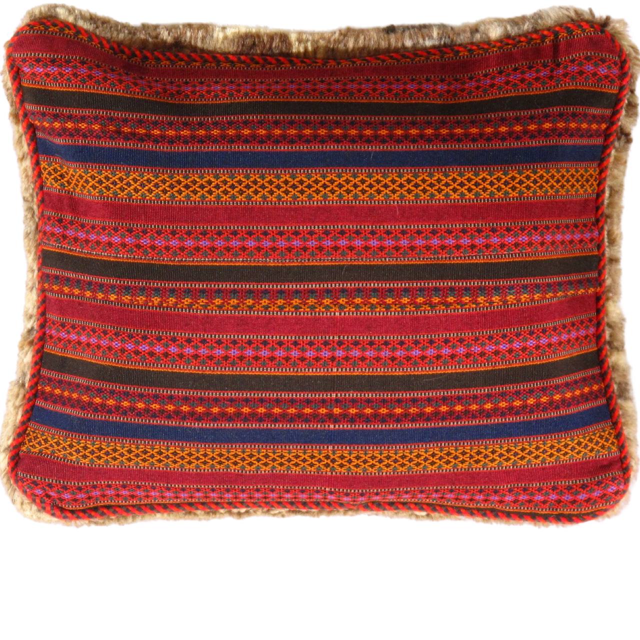 The word “Gabbeh” literally translates to “in the rough,” and it is an accurate description of this style of Persian rug. Gabbeh carpets are woven on makeshift ground looms constructed both of materials that are kept and hauled for long distances by the nomadic tribel, and also of materials that are found at each site where the tribe sets up camp. Due to the fact that part of the loom must be found at each site, a wide variety is introduced. Thus, these rugs are usually somewhat irregular in shape. But, for what they lack in perfectly uniform shape they more than make up for in character, durability and uniqueness.This Gabbeh pillow is made of high-quality LAMBS WOOL The piece was crafted with good workmanship.