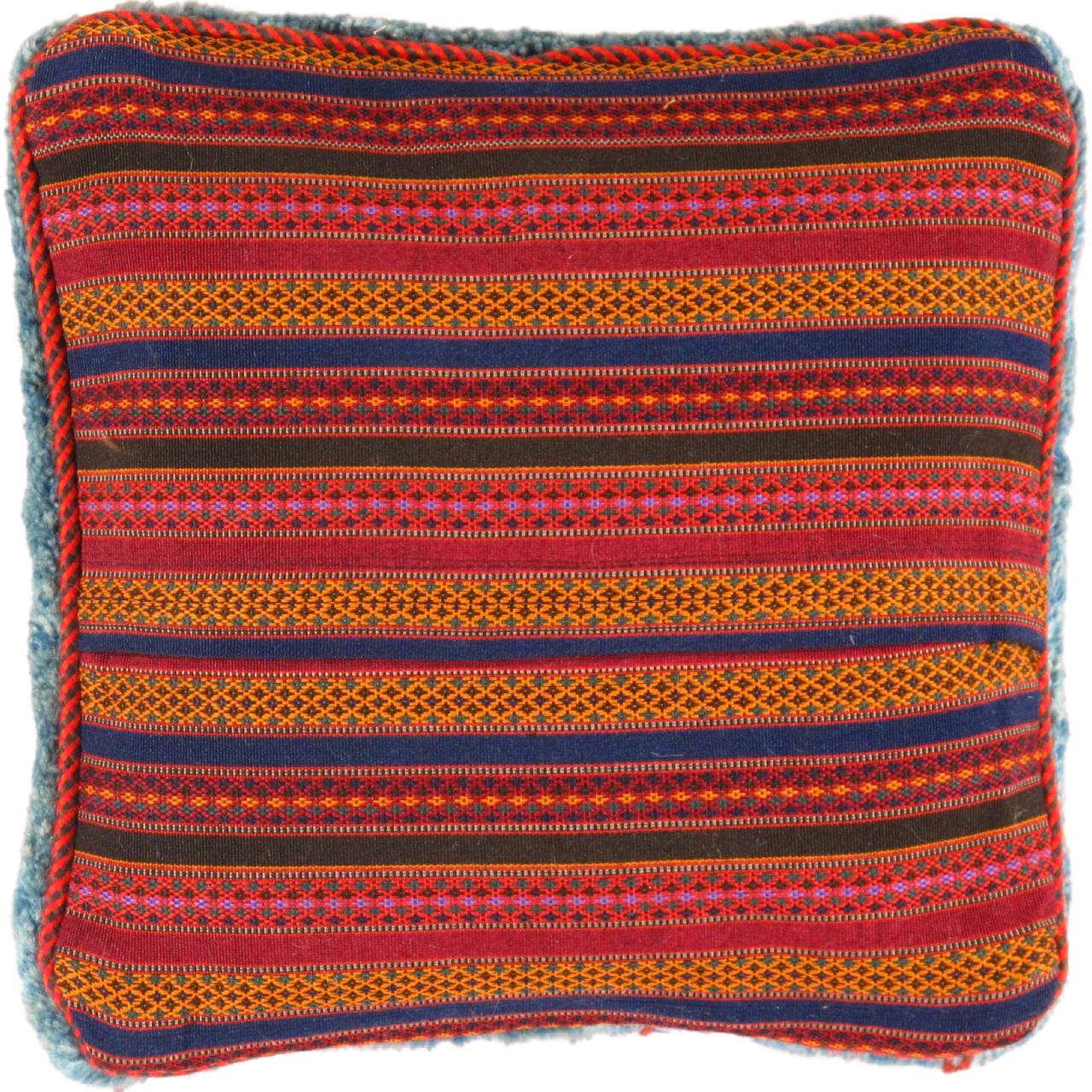 The word “Gabbeh” literally translates to “in the rough,” and it is an accurate description of this style of Persian rug. Gabbeh carpets are woven on makeshift ground looms constructed both of materials that are kept and hauled for long distances by the nomadic tribel, and also of materials that are found at each site where the tribe sets up camp. Due to the fact that part of the loom must be found at each site, a wide variety is introduced. Thus, these rugs are usually somewhat irregular in shape. But, for what they lack in perfectly uniform shape they more than make up for in character, durability and uniqueness.This Gabbeh pillow is made of high-quality LAMBS WOOL The piece was crafted with good workmanship.