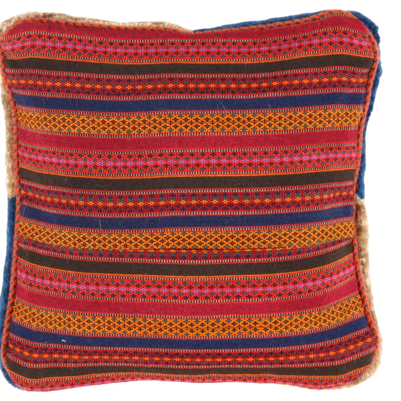 The word “Gabbeh” literally translates to “in the rough,” and it is an accurate description of this style of Persian rug. Gabbeh carpets are woven on makeshift ground looms constructed both of materials that are kept and hauled for long distances by the nomadic tribel, and also of materials that are found at each site where the tribe sets up camp. Due to the fact that part of the loom must be found at each site, a wide variety is introduced. Thus, these rugs are usually somewhat irregular in shape. But, for what they lack in perfectly uniform shape they more than make up for in character, durability and uniqueness.This Gabbeh pillow is made of high-quality LAMBS WOOL The piece was crafted with good workmanship.