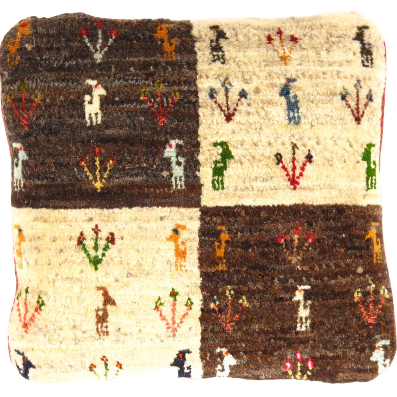This Gabbeh pillow is made of high-quality LAMBS WOOL The piece was crafted with good workmanship.