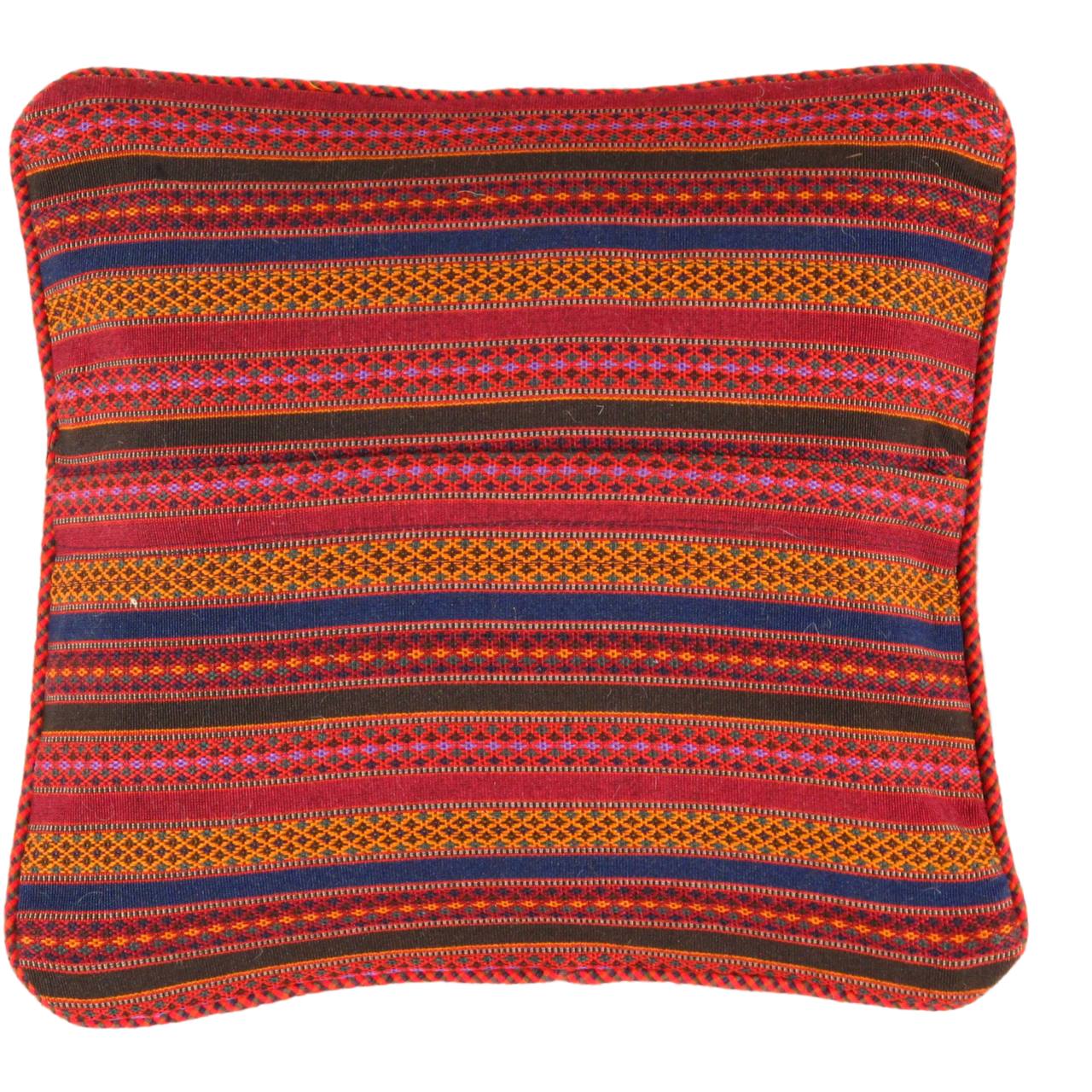 The word “Gabbeh” literally translates to “in the rough,” and it is an accurate description of this style of Persian rug. Gabbeh carpets are woven on makeshift ground looms constructed both of materials that are kept and hauled for long distances by the nomadic tribel, and also of materials that are found at each site where the tribe sets up camp. Due to the fact that part of the loom must be found at each site, a wide variety is introduced. Thus, these rugs are usually somewhat irregular in shape. But, for what they lack in perfectly uniform shape they more than make up for in character, durability and uniqueness.This Gabbeh pillow is made of high-quality LAMBS WOOL The piece was crafted with good workmanship.