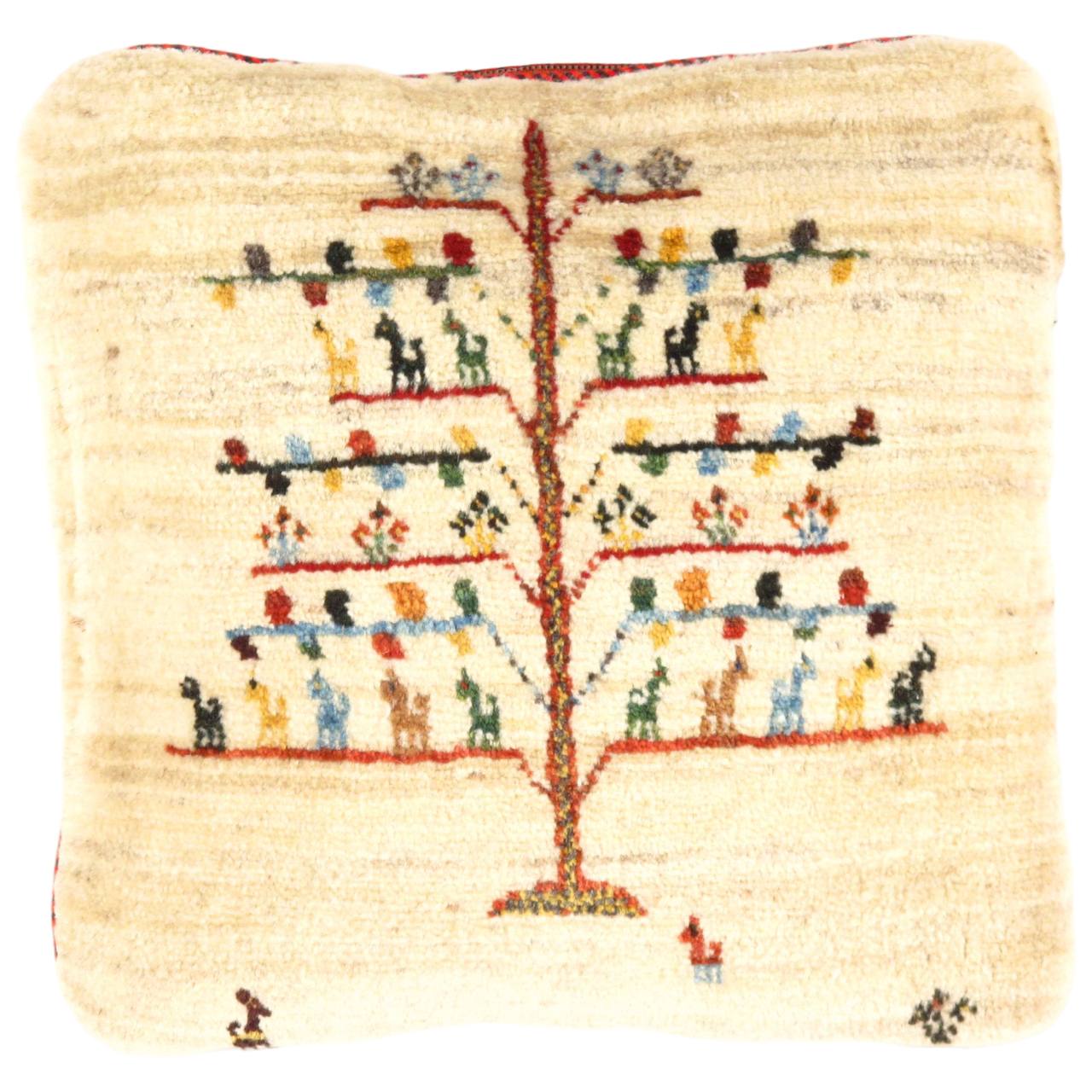 This Gabbeh pillow is made of high-quality LAMBS WOOL The piece was crafted with good workmanship.