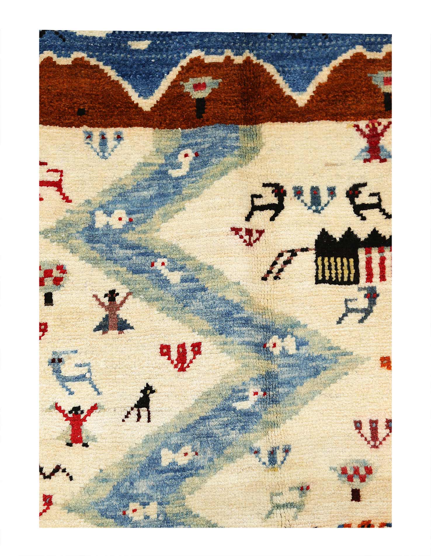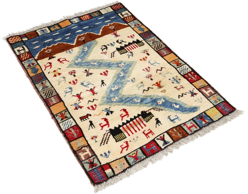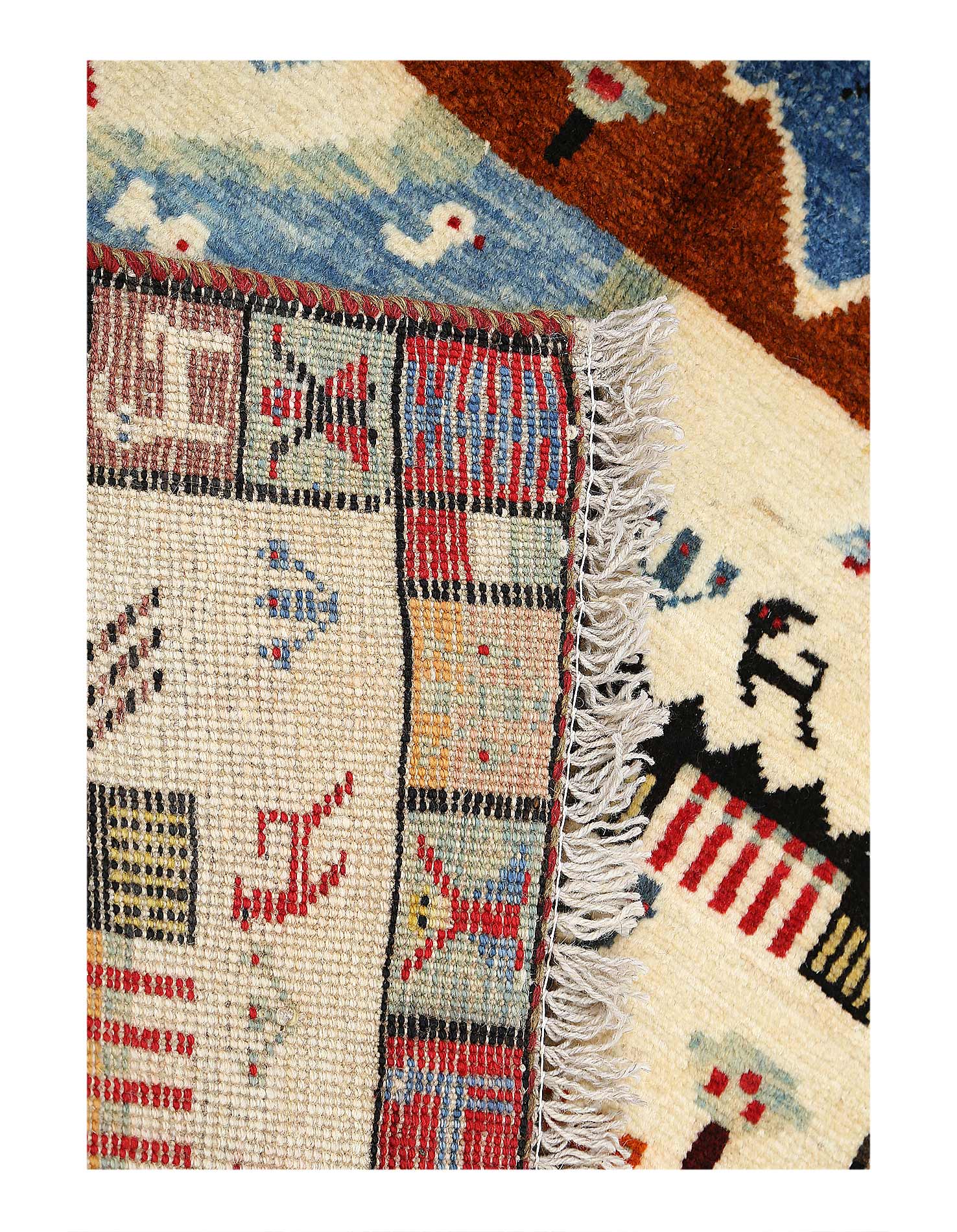 Gabbeh Rugs feature hand-spun wool in both the pile and foundation. These rugs are characterized by their abstract designs that relies upon open fields of color and a playfulness with geometric figures used to depict a story, person, or event. Gabbeh Rugs are popular in a contemporary or modern setting and are extremely durable, usually small to medium size.