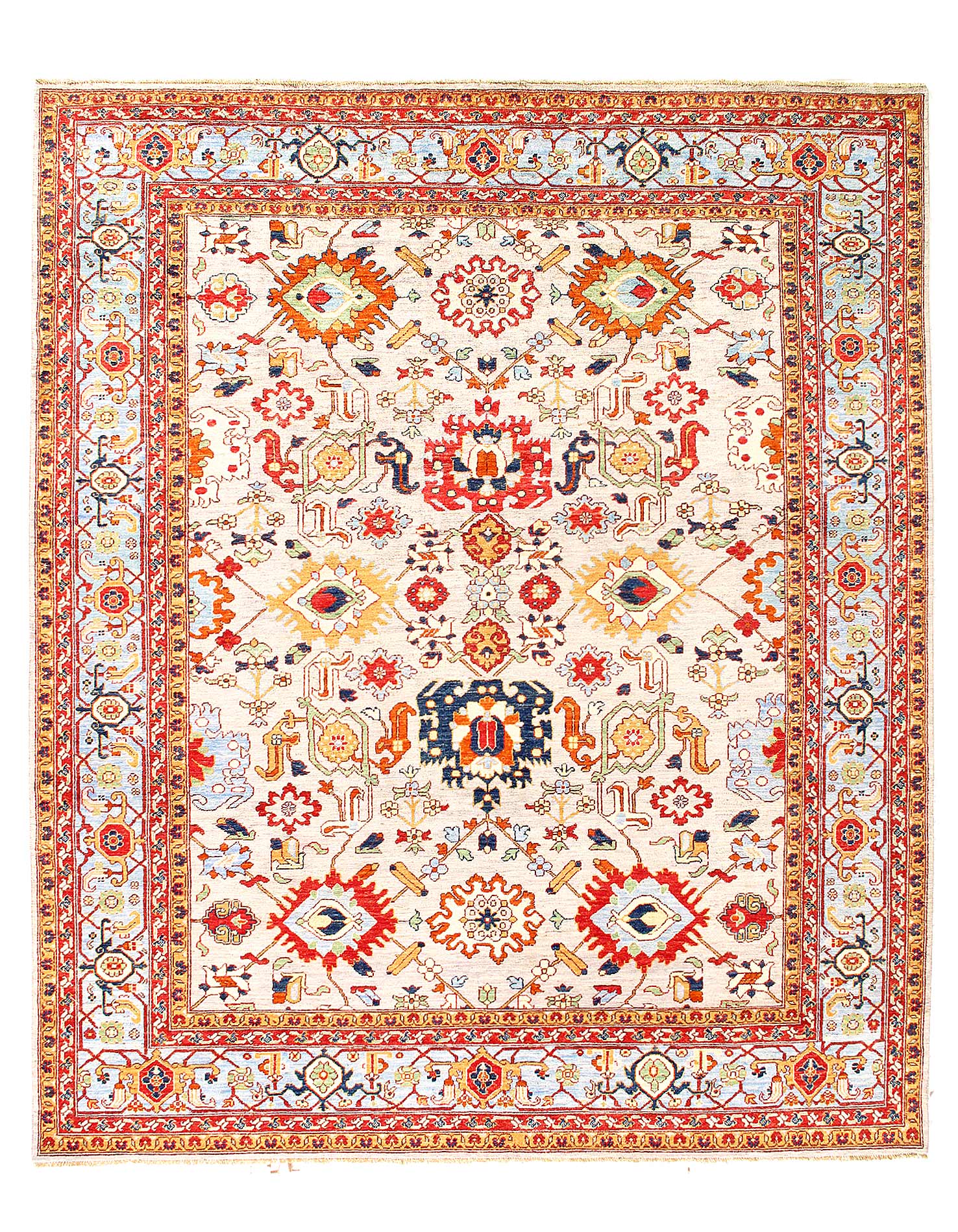 Original Heriz handmade and hand-knotted in Pakistan, This rug is handmade from 100-percent premium, hand-spun wool, and employ ancient pot-dying techniques to give them their authentic look.