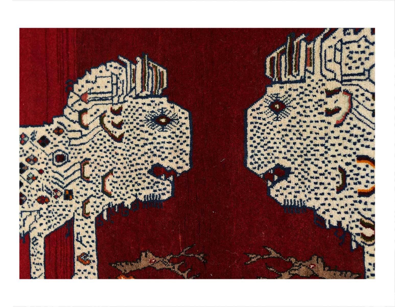 This Shiraz carpet originates from Persia and has been knotted from nomads in a smaller town. Its size is 2'5" by 5' 4''with a weight of 30 lbs. Thanks to its origin the carpet has been crafted in the most traditional craftsmanship over months of handicraft. With its geometric design patterns this type of Persian rug re-gained a high popularity during the past years. With a pile height of 0.39 in and a knot density of 129 - 161 / square inch the carpet has been crafted to an extraordinary high level of quality and robustness. Nomads used natural dyes for the colors of this carpet made from Wool. It is in perfect condition. You are going to be very fond of this unique piece of highest craftsmanship