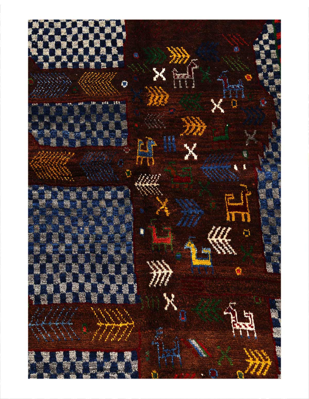 This Shiraz carpet originates from Persia and has been knotted from nomads in a smaller town. Its size is 3'6" by 5' 7''with a weight of 30 lbs. Thanks to its origin the carpet has been crafted in the most traditional craftsmanship over months of handicraft. With its geometric design patterns this type of Persian rug re-gained a high popularity during the past years. With a pile height of 0.39 in and a knot density of 129 - 161 / square inch the carpet has been crafted to an extraordinary high level of quality and robustness. Nomads used natural dyes for the colors of this carpet made from Wool. It is in perfect condition. You are going to be very fond of this unique piece of highest craftsmanship