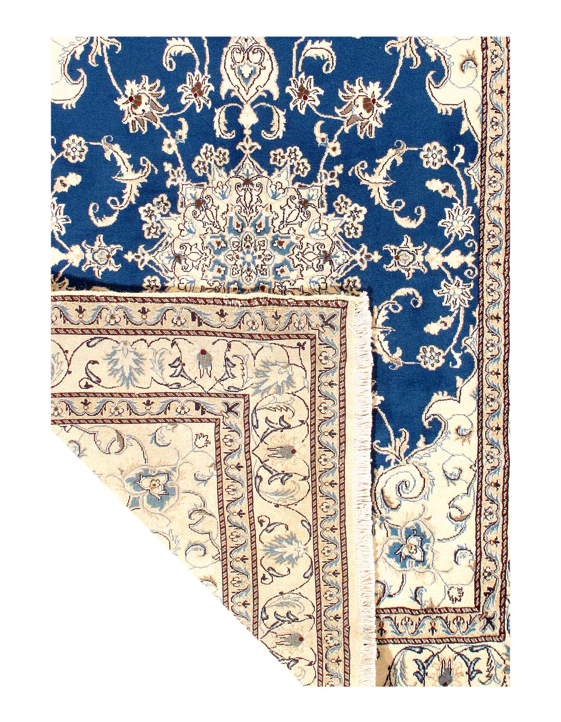 Hand knotted Nain rug ,Original Fine Persian Rug. Handmade Hand-knotted Silk & wool on a Silk .Classical combination of colors, Light Blue background