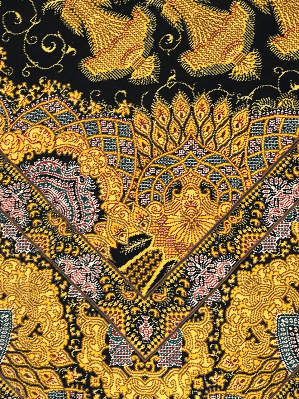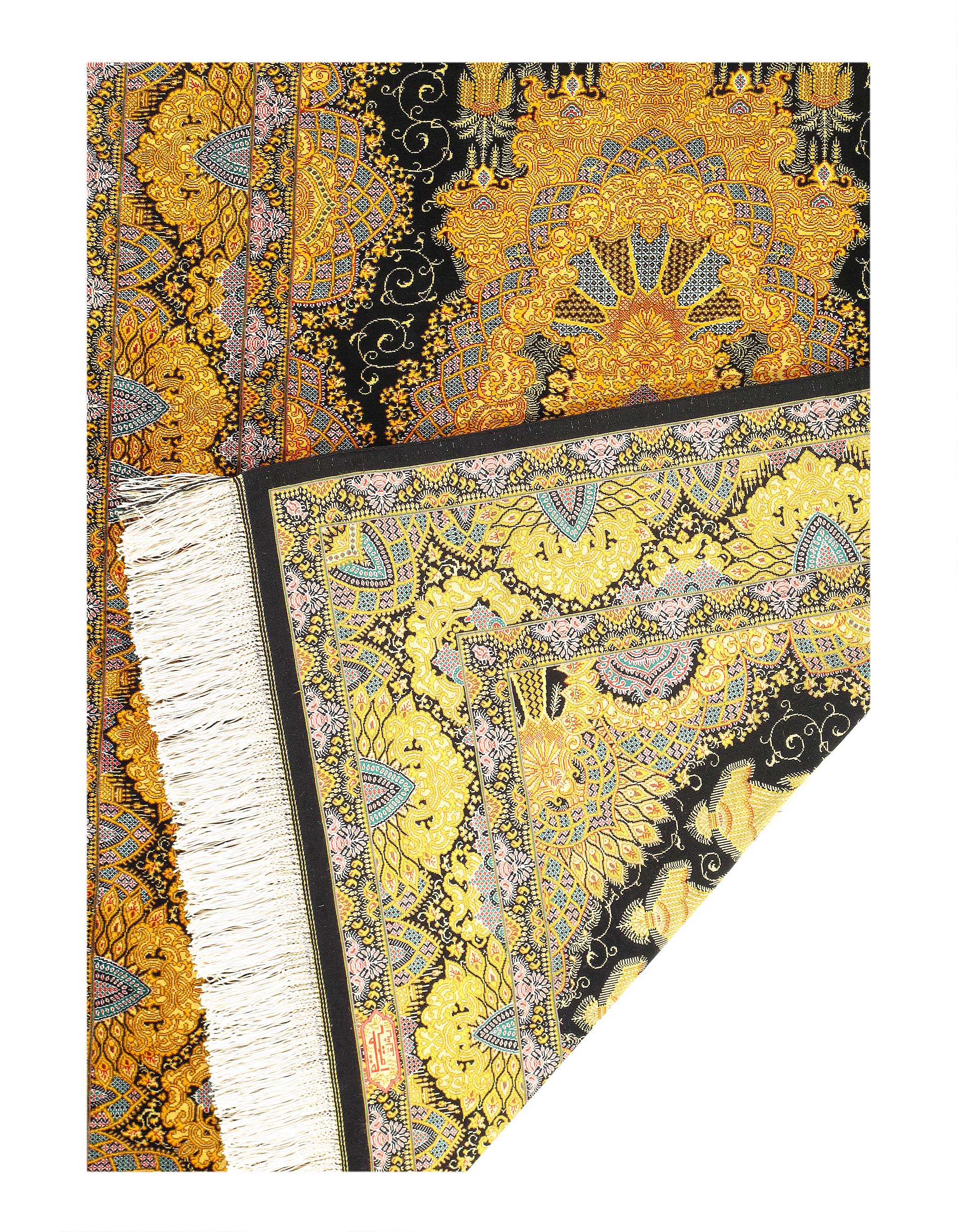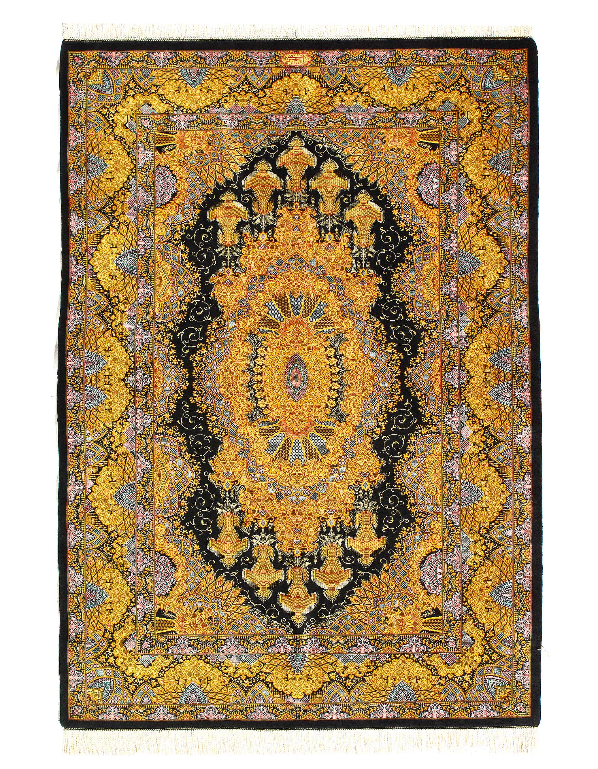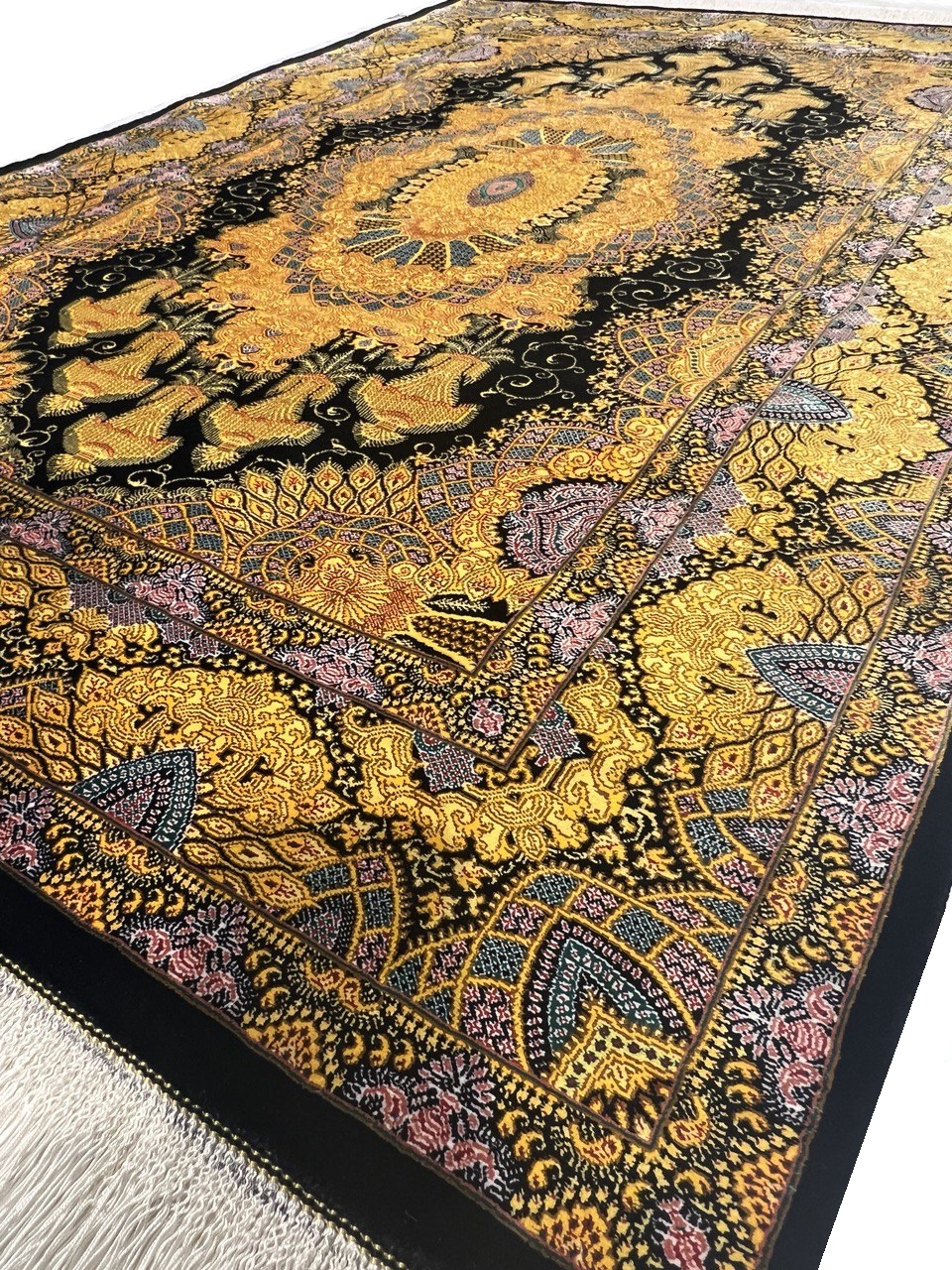 This Qum (also called: Qom) carpet is pure luxury for your home. It consist of natural silk from the city Qum, which is known to possess the highest grade silk in Persia. Its astonishing ornaments made from silk are going to impress without any doubt. The silk reveals new colours and details depending on the angle of how light is reflected. This carpet is a unique piece of art .