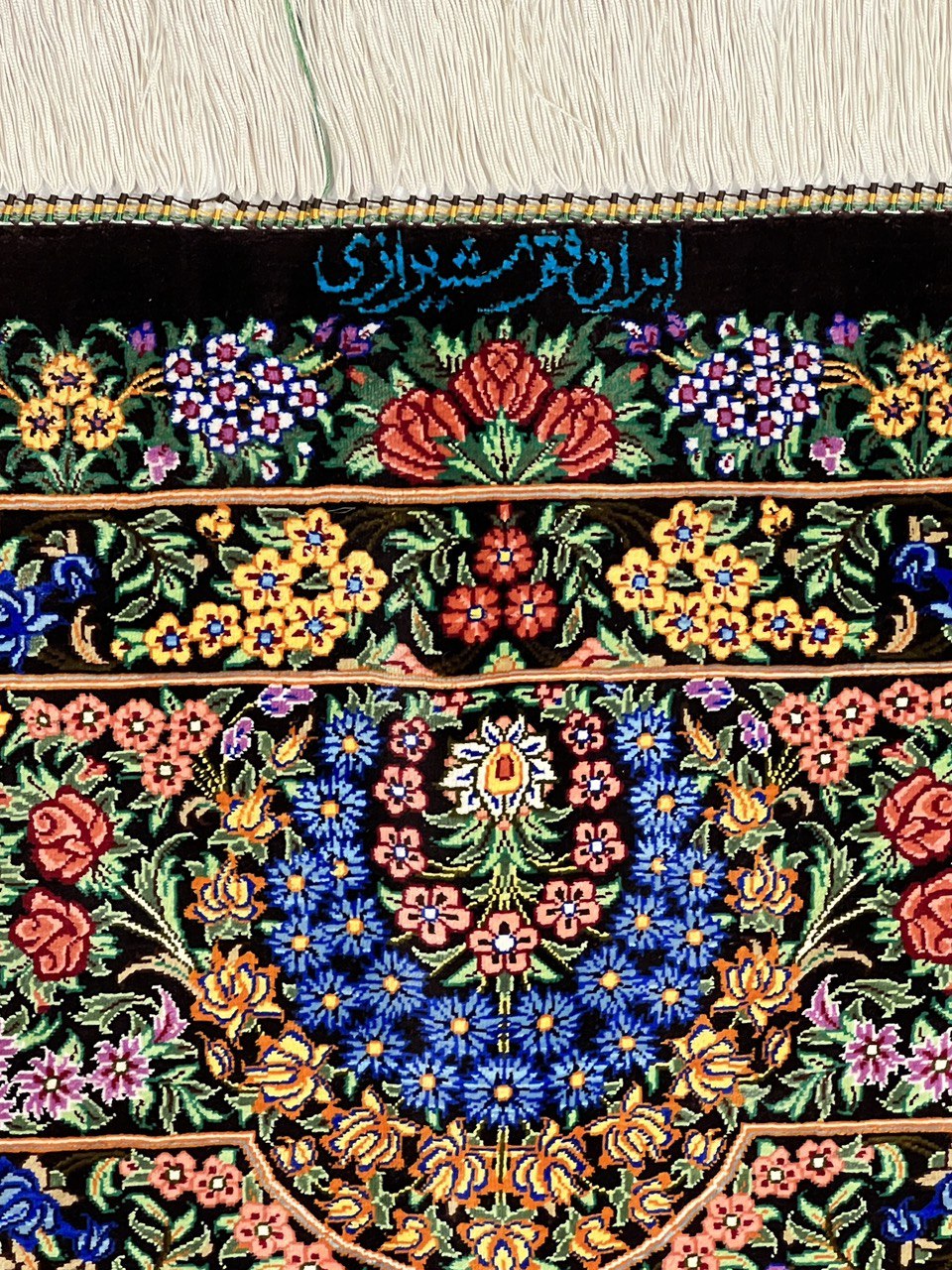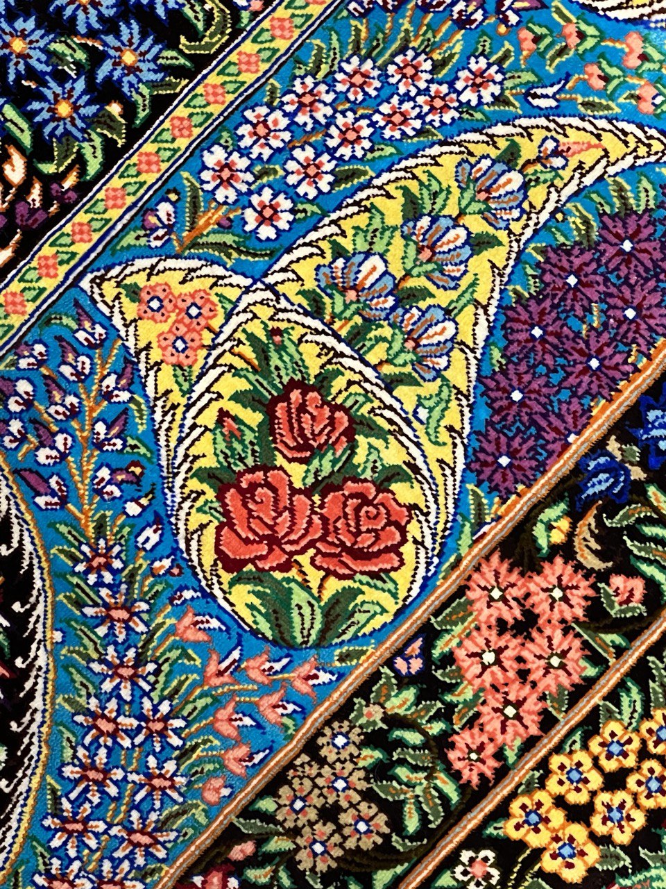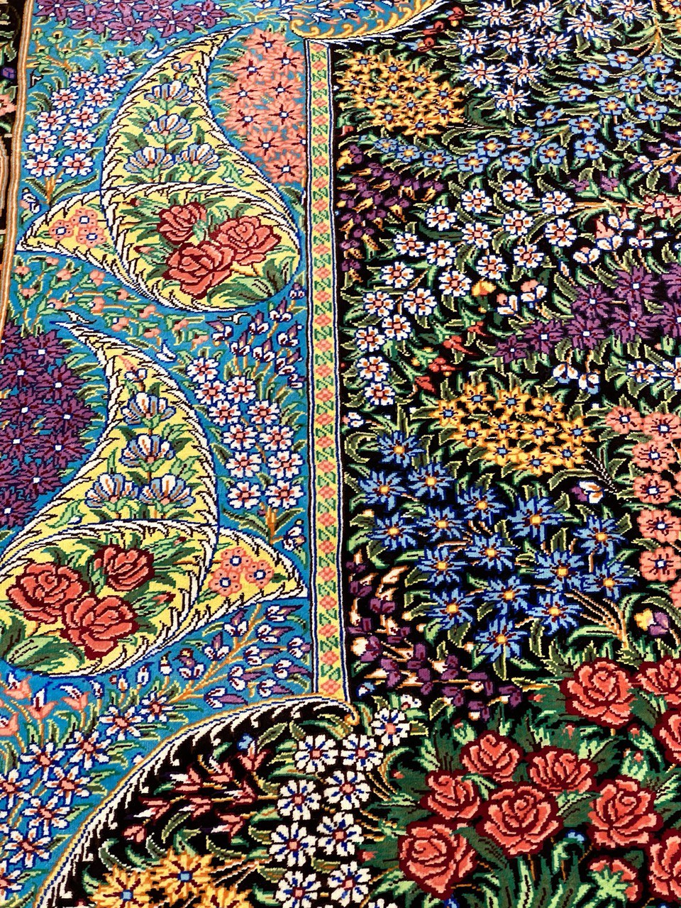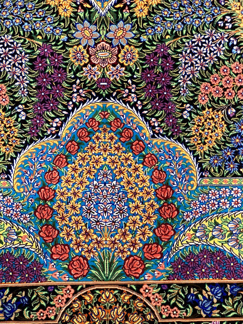 This Qum (also called: Qom) carpet is pure luxury for your home. It consist of natural silk from the city Qum, which is known to possess the highest grade silk in Persia. Its astonishing ornaments made from silk are going to impress without any doubt. The silk reveals new colours and details depending on the angle of how light is reflected. This carpet is a unique piece of art .