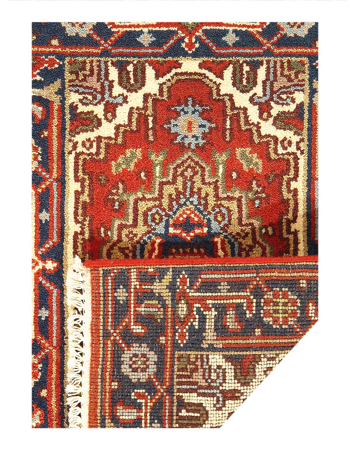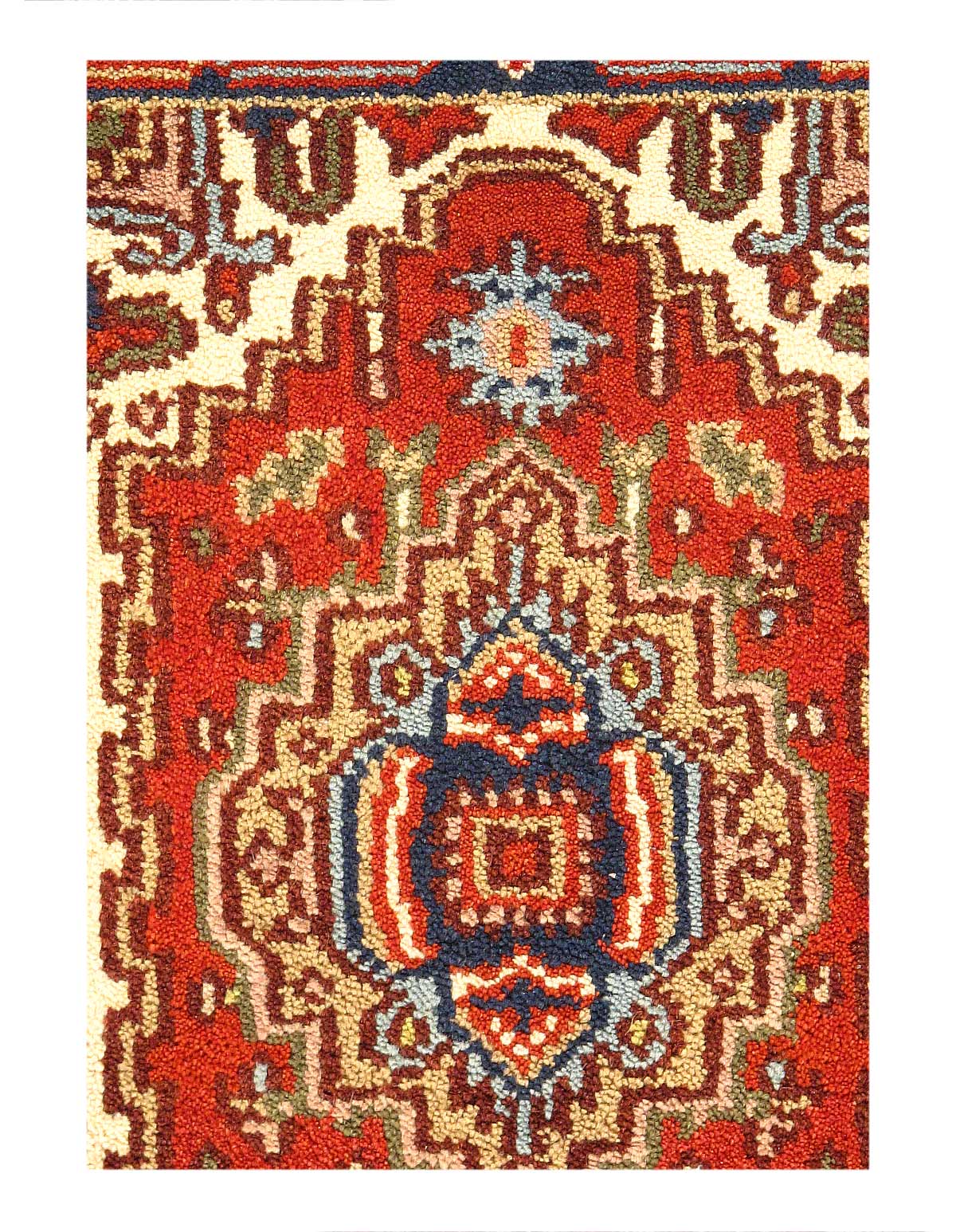 Indo Serapi design rug. Handmade Hand-knotted in fine lambswool. Lamb's Wool on a Cotton Foundation Vegetable Dyed Hand-Spun Wool Rug The Serapi Rug is one of the most sought after rugs particularly in the USA and England for many years. No other rug so epitomizes the "East Coast Establishment" than the Serapi carpet This rug has a dense, soft pile, and excellent quality, to ensure that you will enjoy the look and feel of your rug for years to come