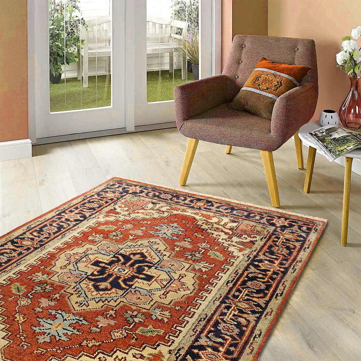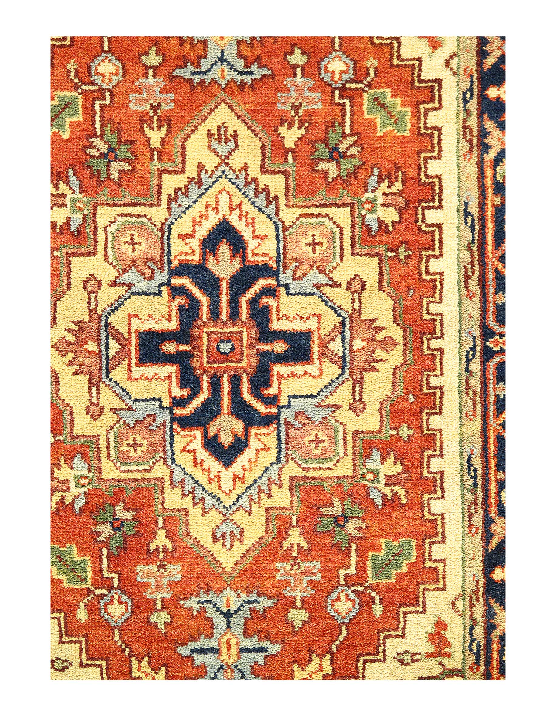 Indo Serapi design rug. Handmade Hand-knotted in fine lambswool. Lamb's Wool on a Cotton Foundation Vegetable Dyed Hand-Spun Wool Rug The Serapi Rug is one of the most sought after rugs particularly in the USA and England for many years. No other rug so epitomizes the "East Coast Establishment" than the Serapi carpet This rug has a dense, soft pile, and excellent quality, to ensure that you will enjoy the look and feel of your rug for years to come #D08955