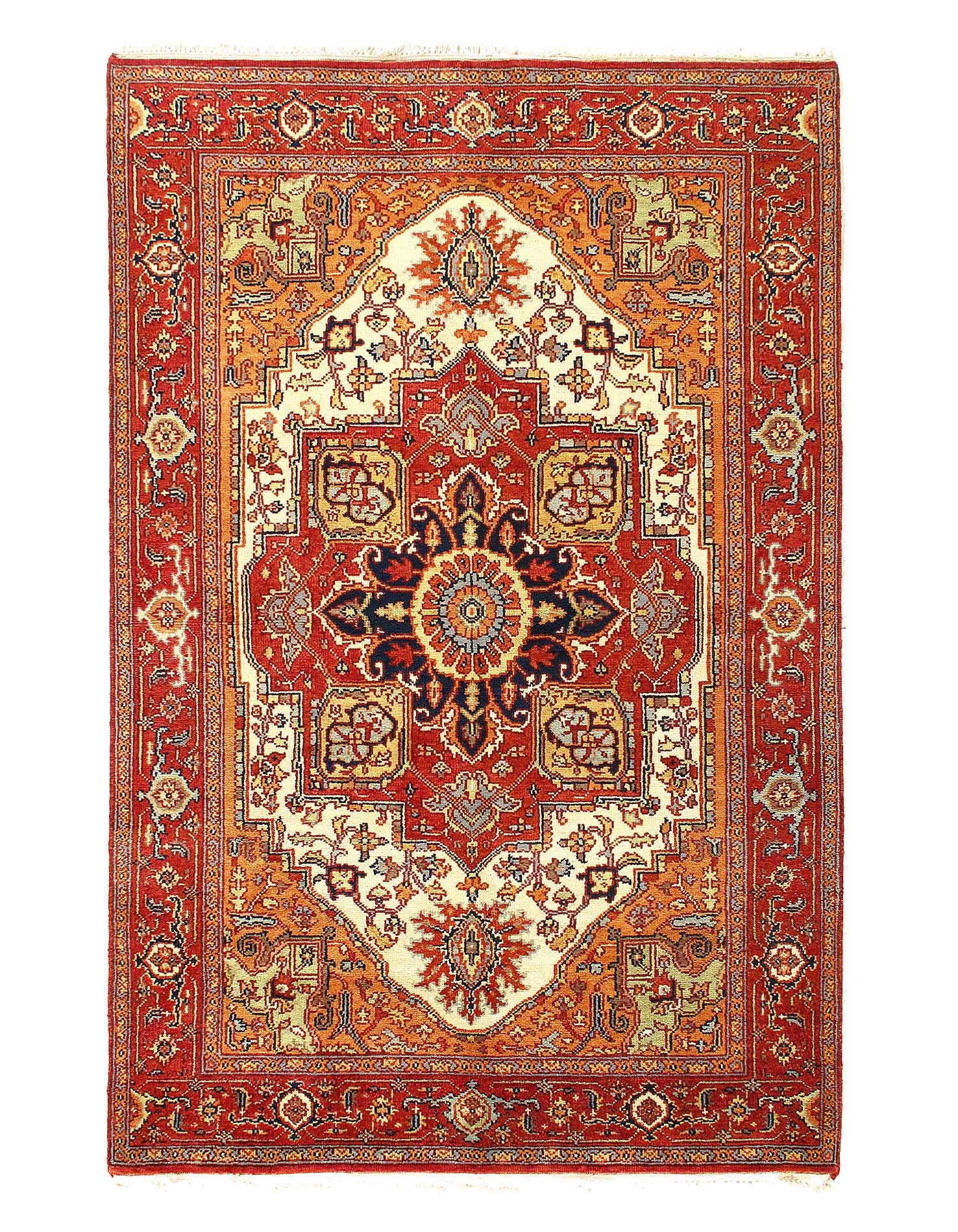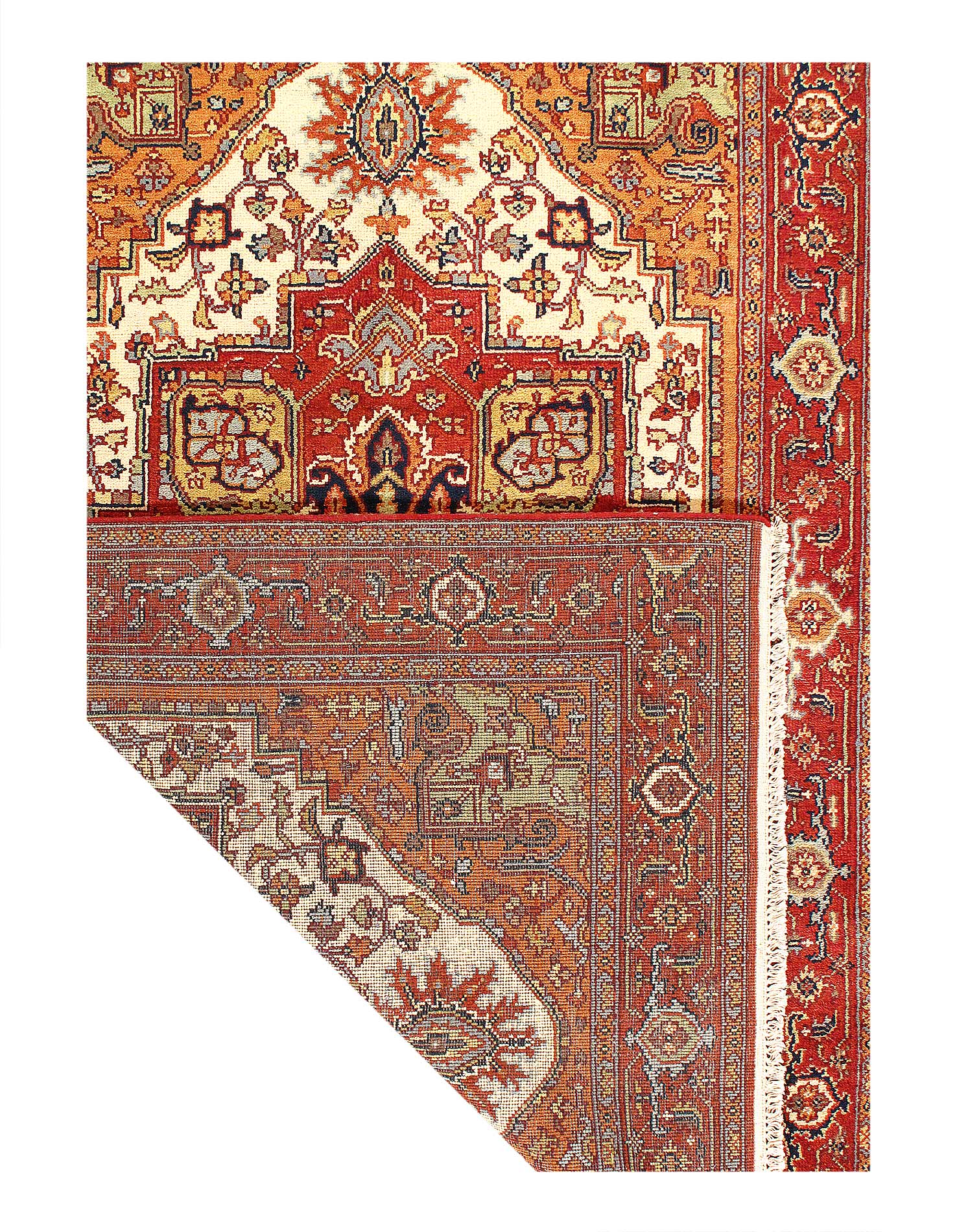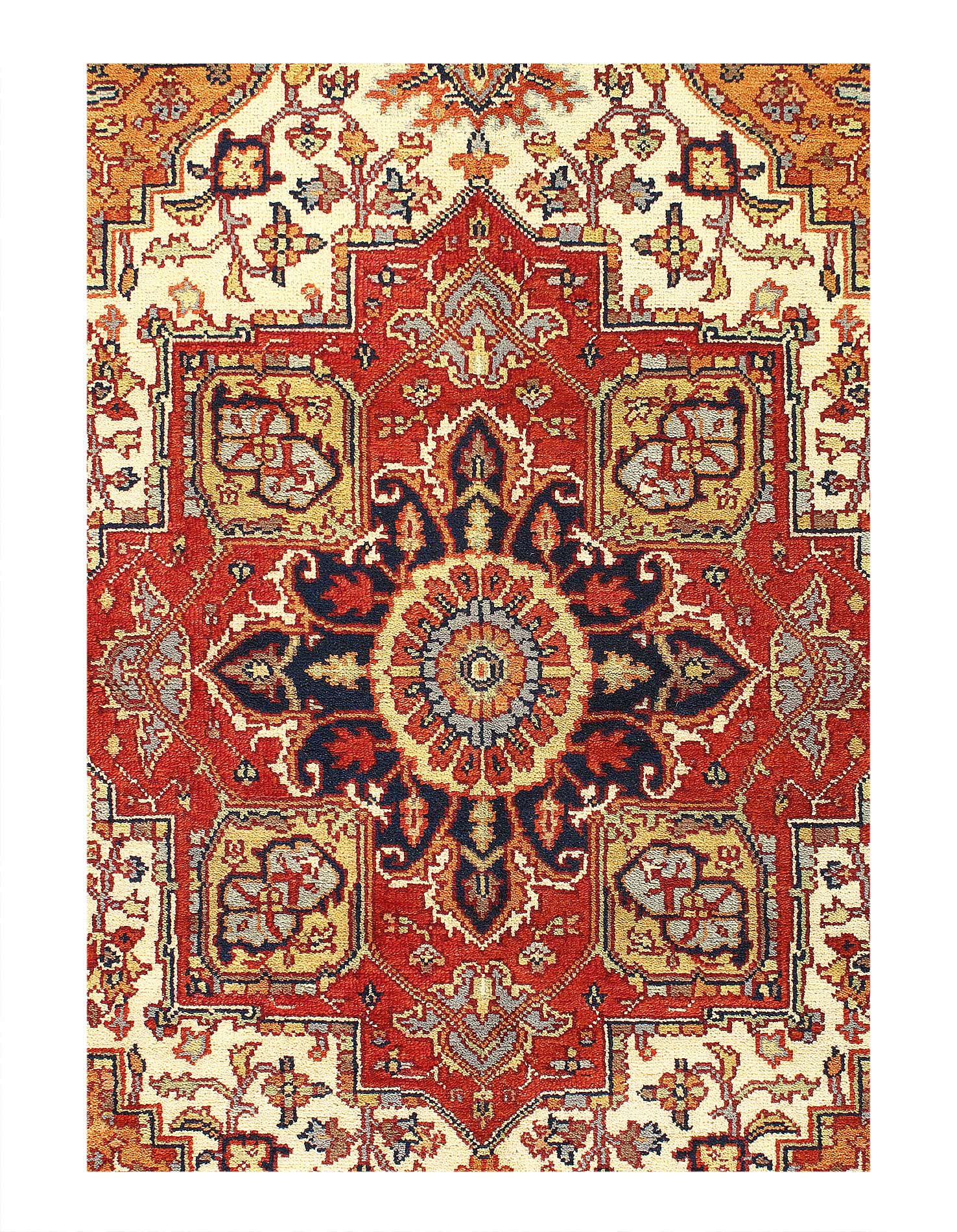 Indo Serapi design rug. Handmade Hand-knotted in fine lambswool. Lamb's Wool on a Cotton Foundation Vegetable Dyed Hand-Spun Wool Rug The Serapi Rug is one of the most sought after rugs particularly in the USA and England for many years. No other rug so epitomizes the "East Coast Establishment" than the Serapi carpet This rug has a dense, soft pile, and excellent quality, to ensure that you will enjoy the look and feel of your rug for years to come #D11124