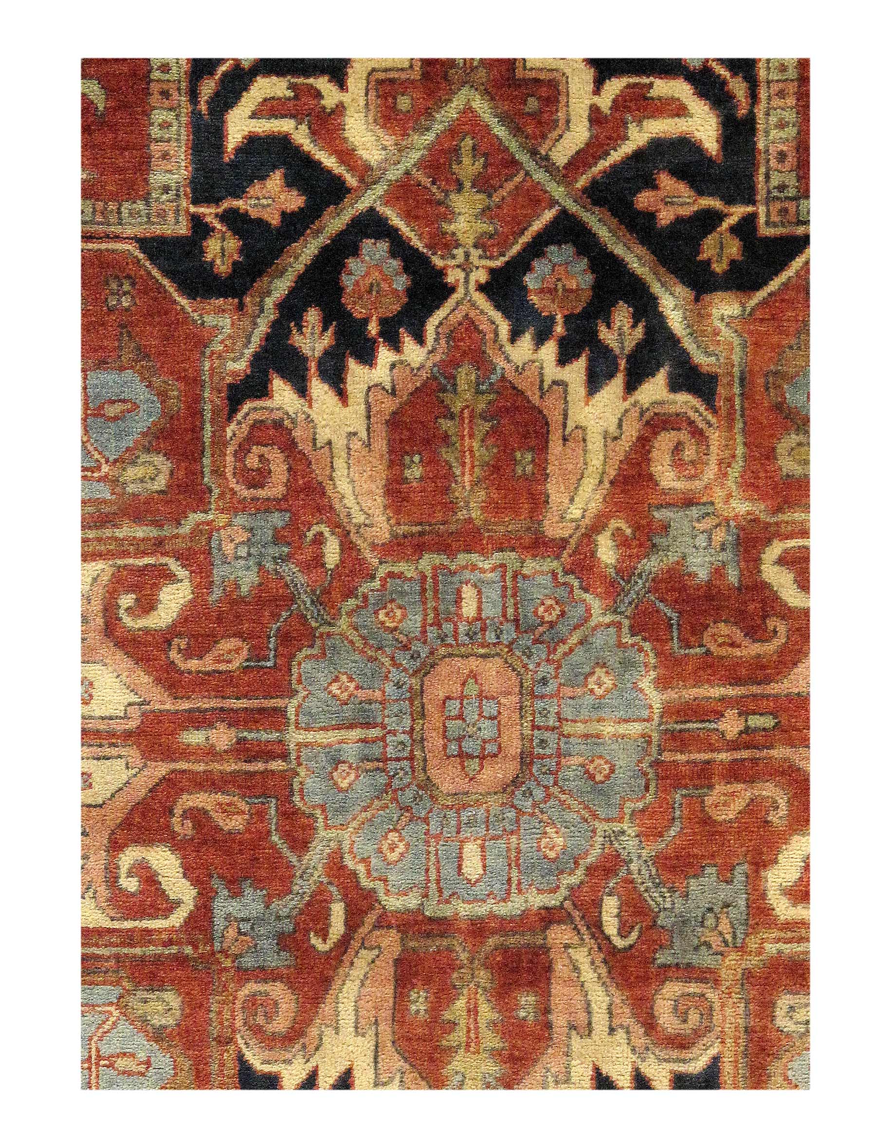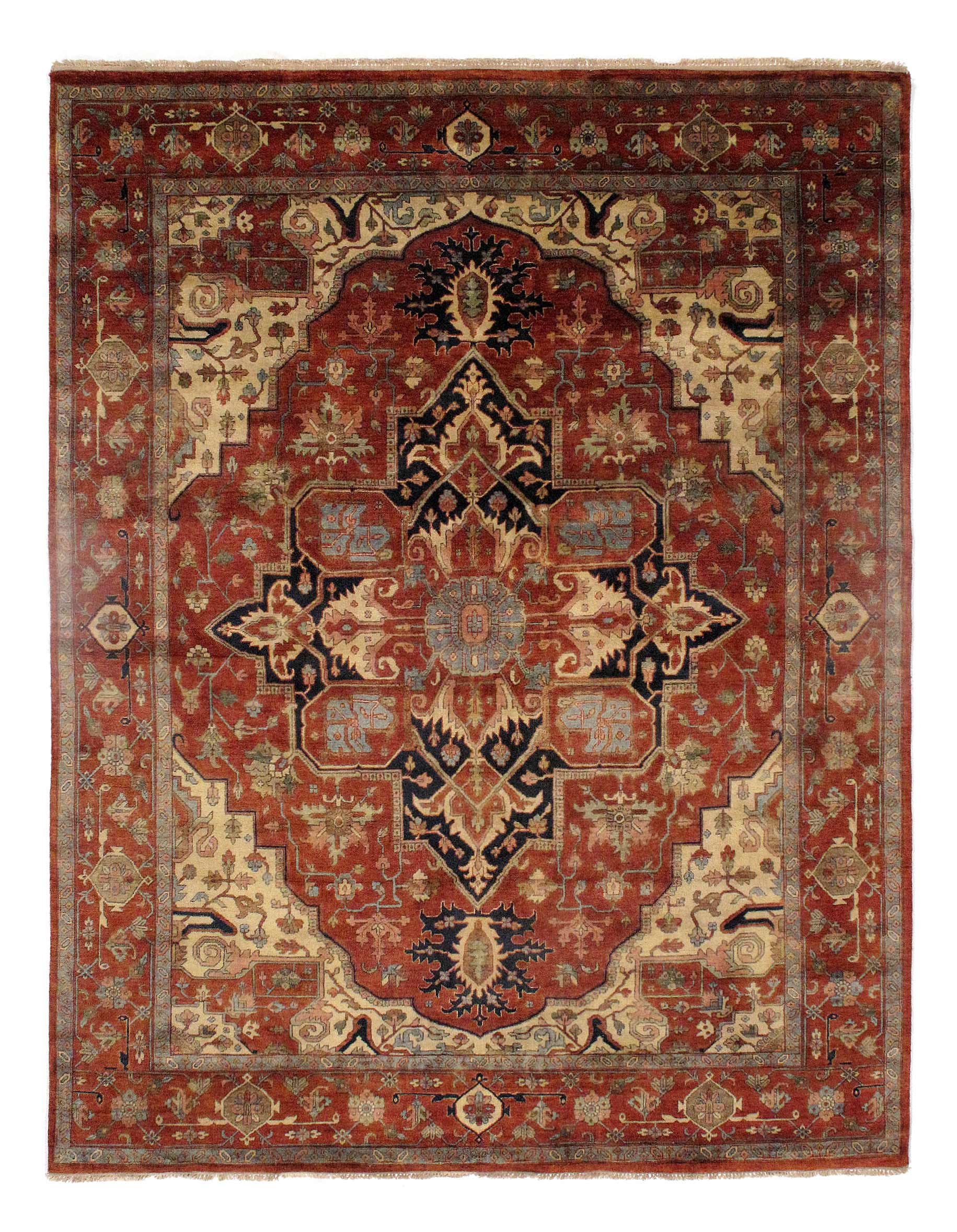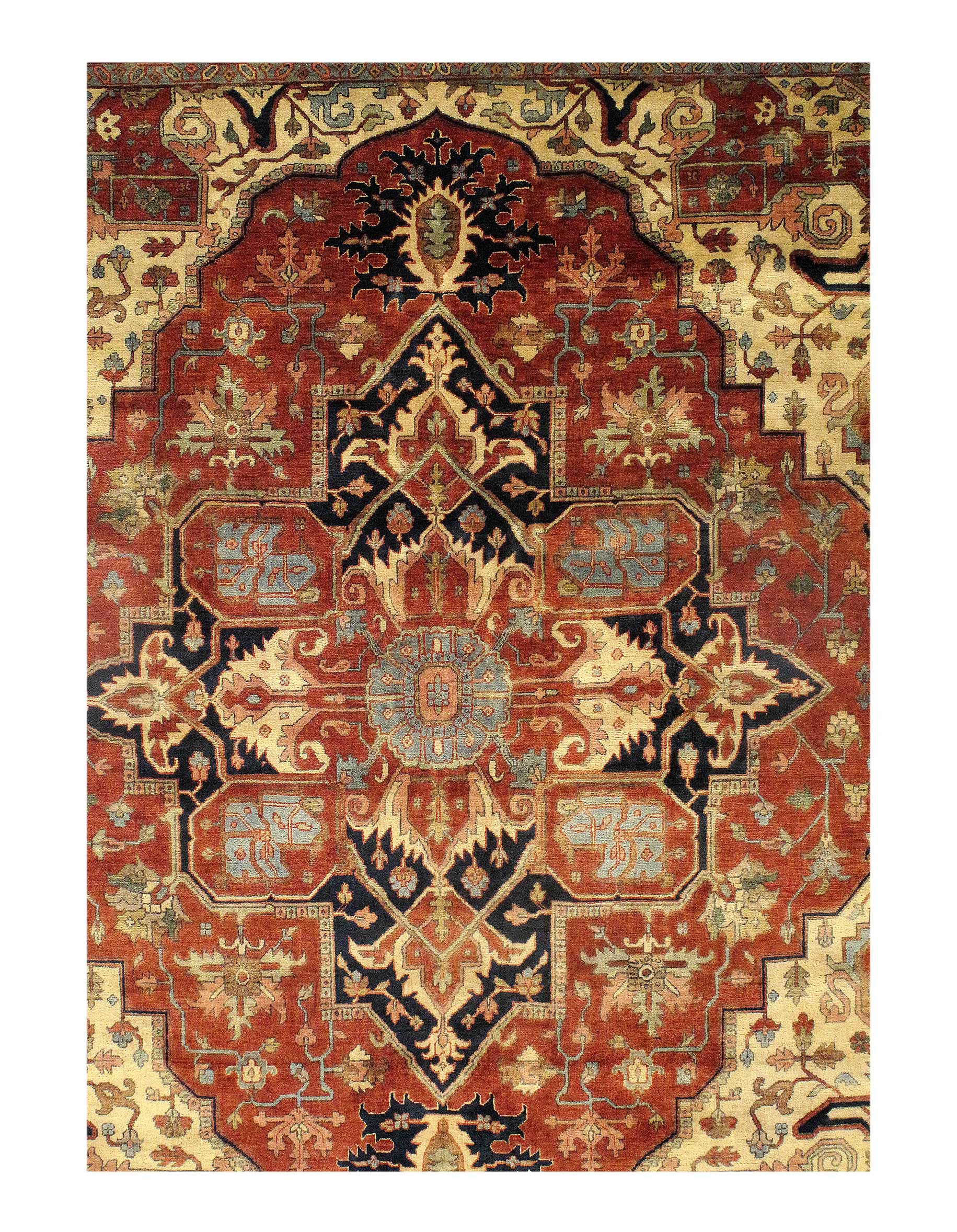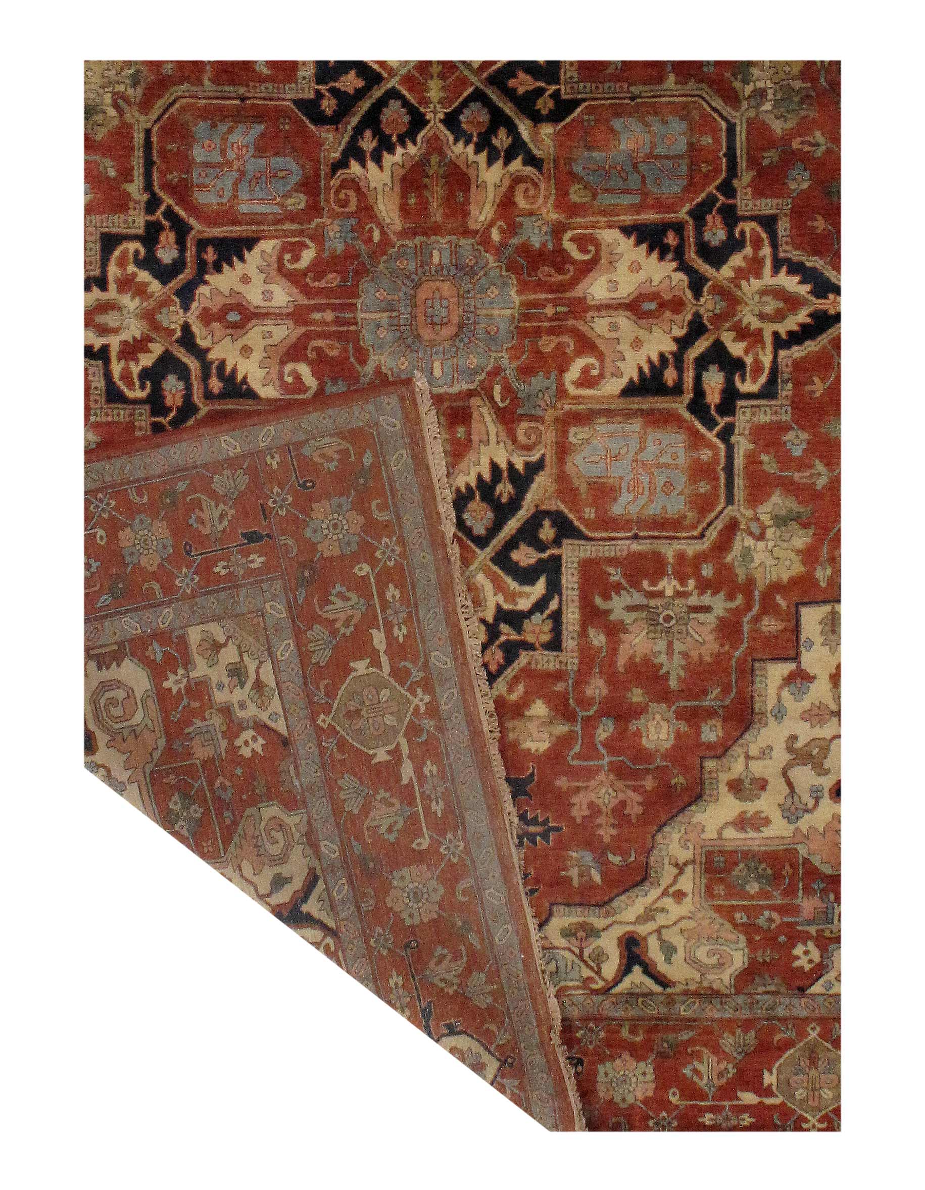 Indo Serapi design rug. Handmade Hand-knotted in fine lambswool. Lamb's Wool on a Cotton Foundation Vegetable Dyed Hand-Spun Wool Rug The Serapi Rug is one of the most sought after rugs particularly in the USA and England for many years. No other rug so epitomizes the "East Coast Establishment" than the Serapi carpet This rug has a dense, soft pile, and excellent quality, to ensure that you will enjoy the look and feel of your rug for years to come