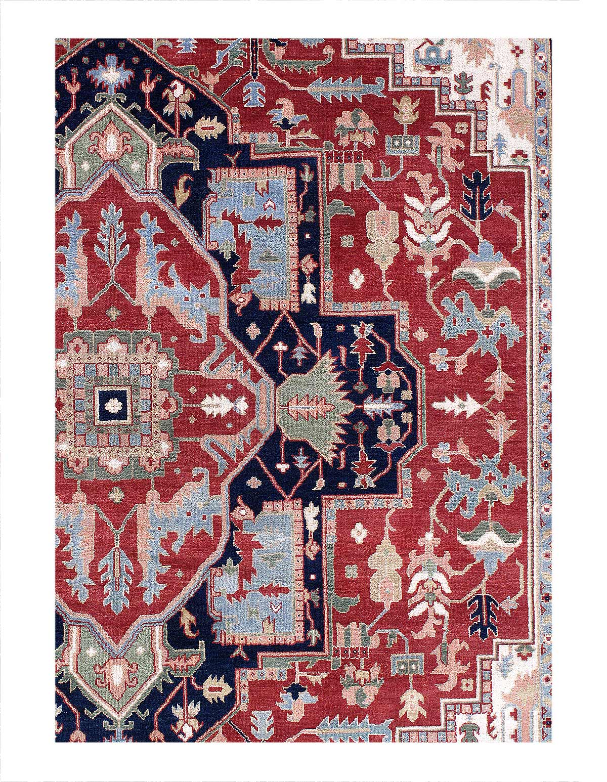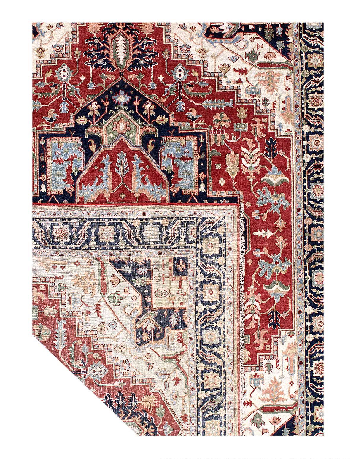 Handmade Hand-knotted in fine lambswool. Lamb's Wool on a Cotton Foundation Vegetable Dyed Hand-Spun Wool Rug The Serapi Rug is one of the most sought after rugs particularly in the USA and England for many years. No other rug so epitomizes the "East Coast Establishment" than the Serapi carpet This rug has a dense, soft pile, and excellent quality, to ensure that you will enjoy the look and feel of your rug for years to come