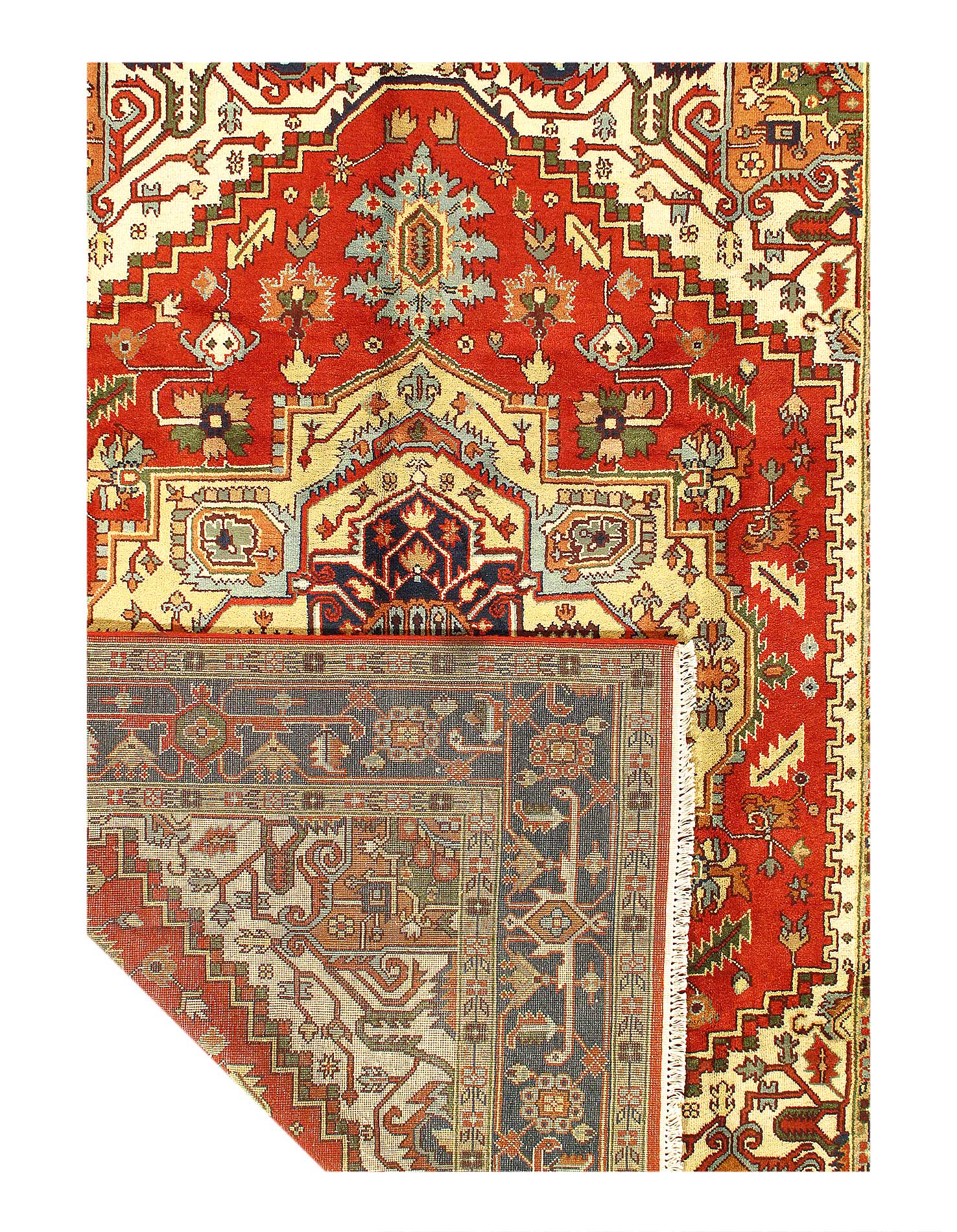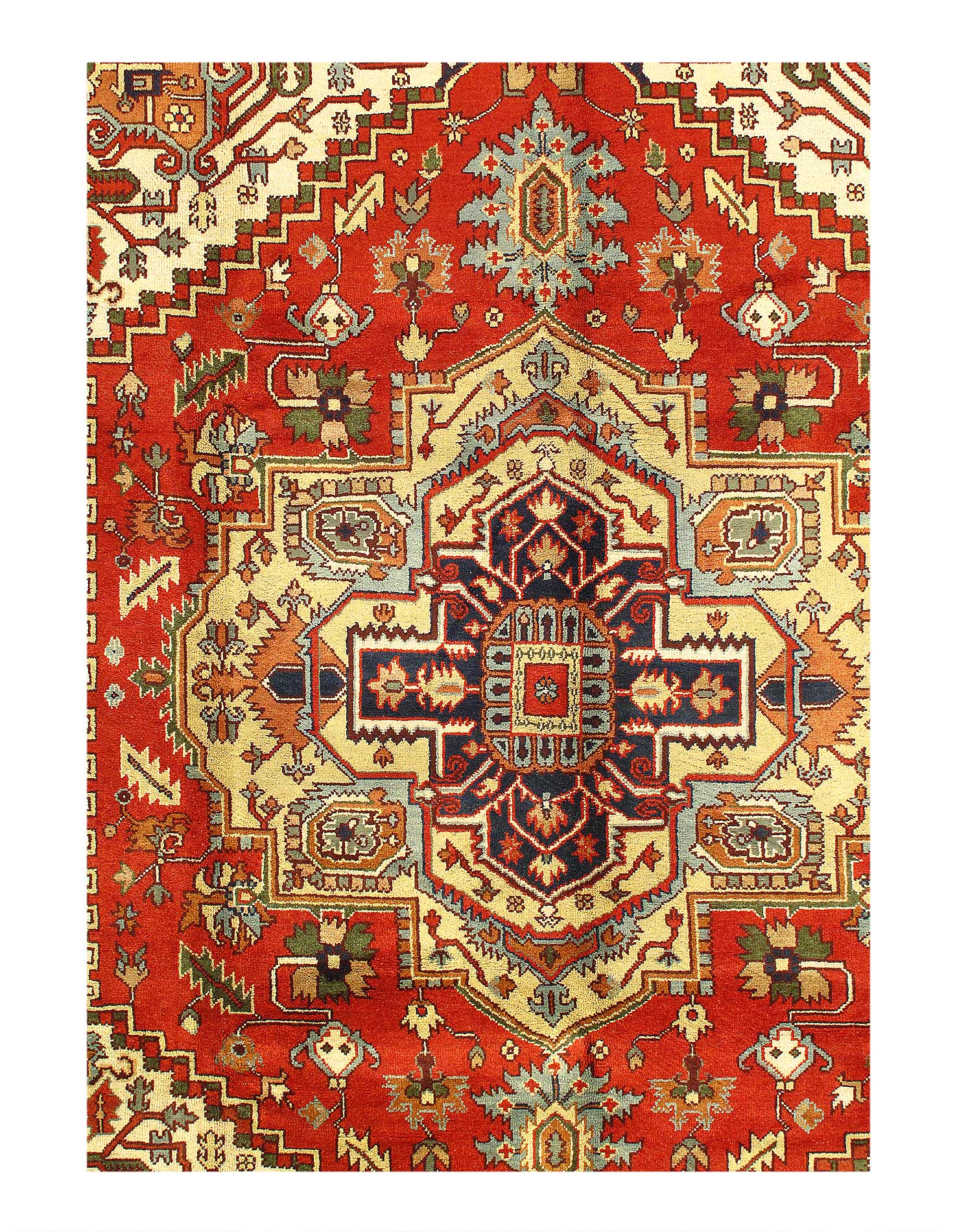 Indo Serapi design rug. Handmade Hand-knotted in fine lambswool. Lamb's Wool on a Cotton Foundation Vegetable Dyed Hand-Spun Wool Rug The Serapi Rug is one of the most sought after rugs particularly in the USA and England for many years. No other rug so epitomizes the "East Coast Establishment" than the Serapi carpet This rug has a dense, soft pile, and excellent quality, to ensure that you will enjoy the look and feel of your rug for years to come