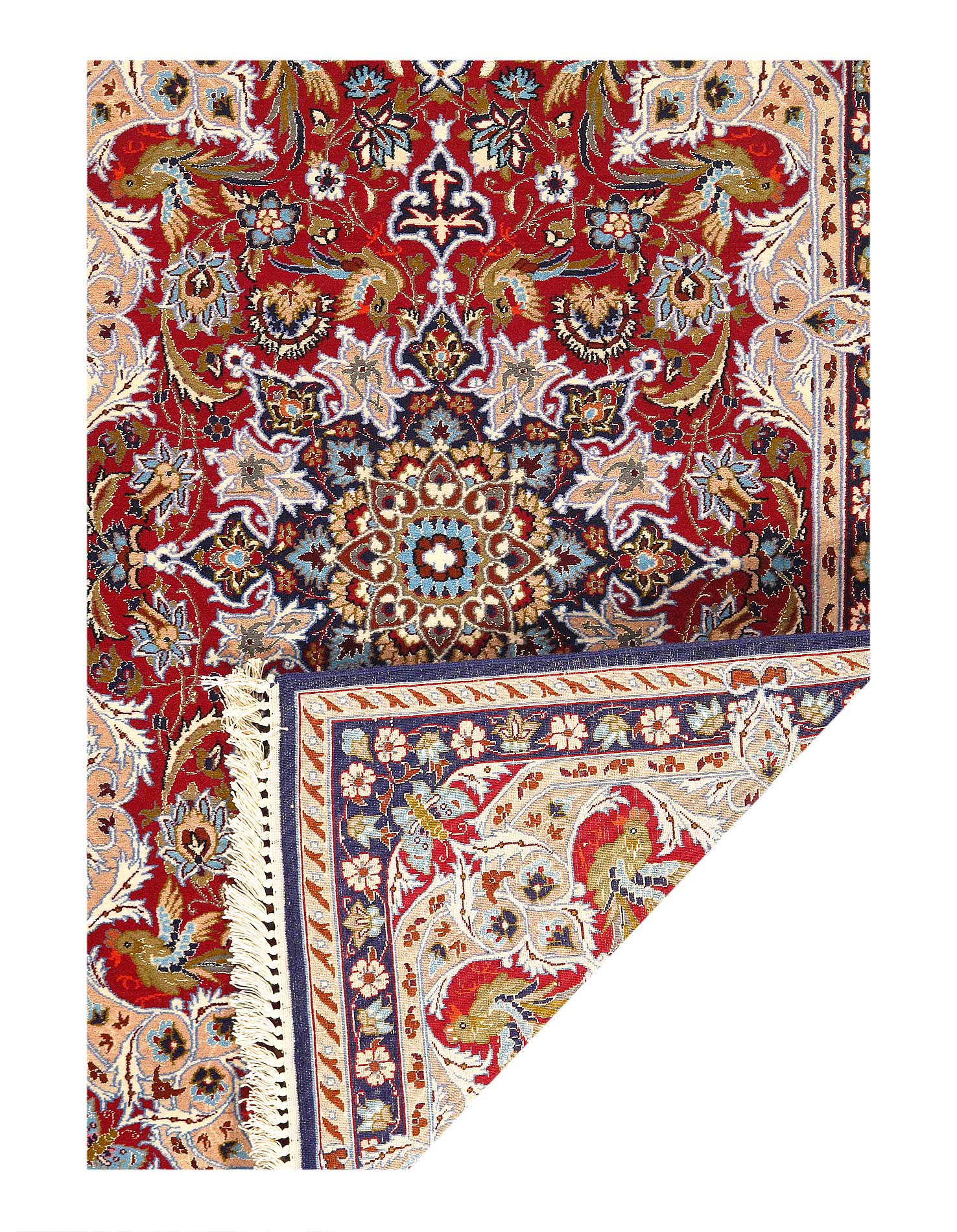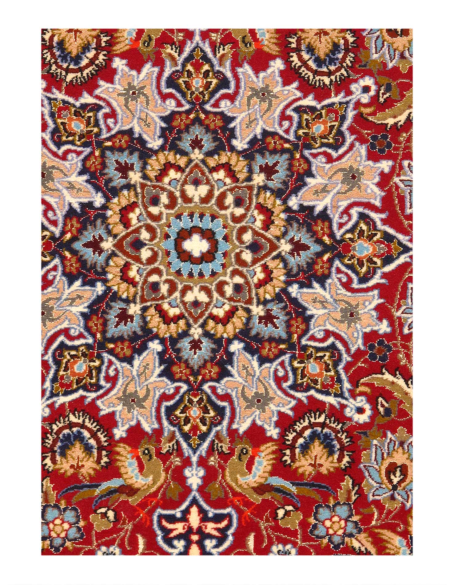 The Isfahan rugs are made with exceptionally good quality of wool & silk. They use traditional motifs inspired by architectural historical buildings from which these rugs originated in. When it comes to high class designs the composition, patterns, and materials of Isfahan meets those expectations. The motifs usually consist of medallions with palmetts and also figural motifs. Isfahan rugs have an extremely high knot density and are woven with silk threads, which give them their luxurious look.