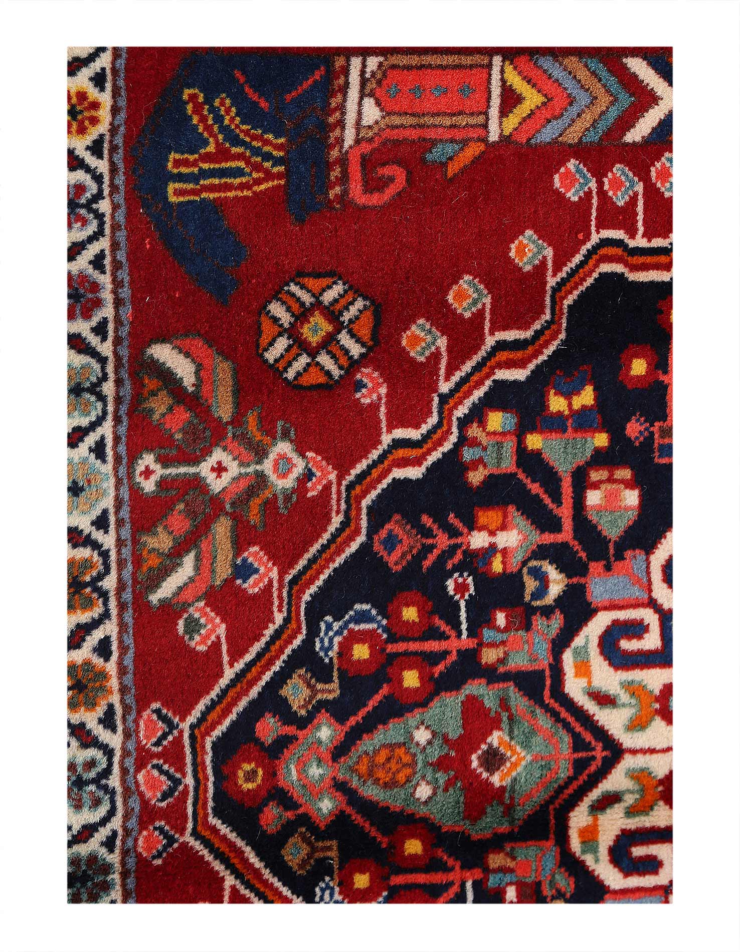 A very attractive and durable carpet woven in the village of Abadeh in southwestern Persia. The pattern is influenced by nomads and usually consists of a hexagon in the middle containing a rosette or a medallion. A good bargain since the carpet retains its value for a long time