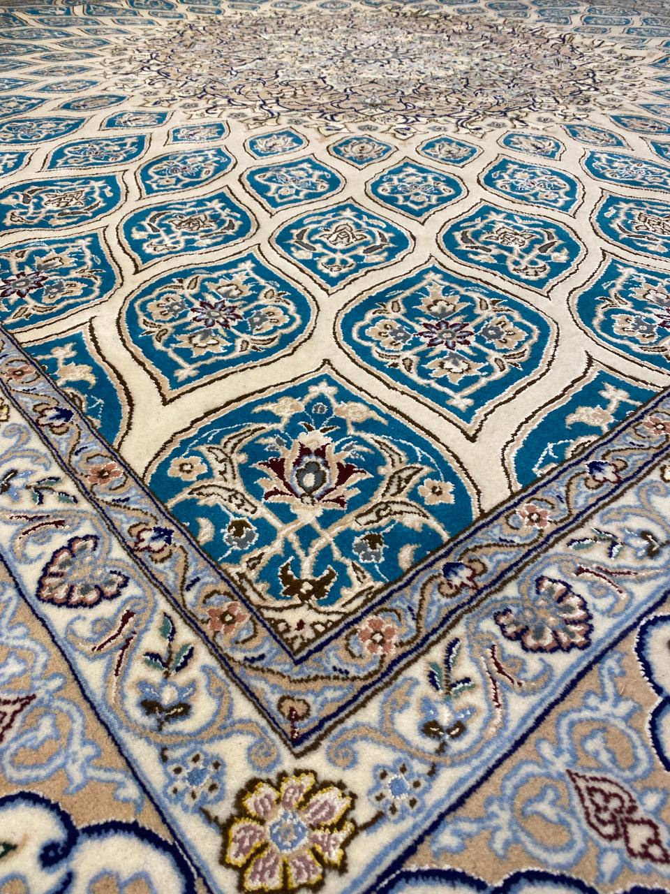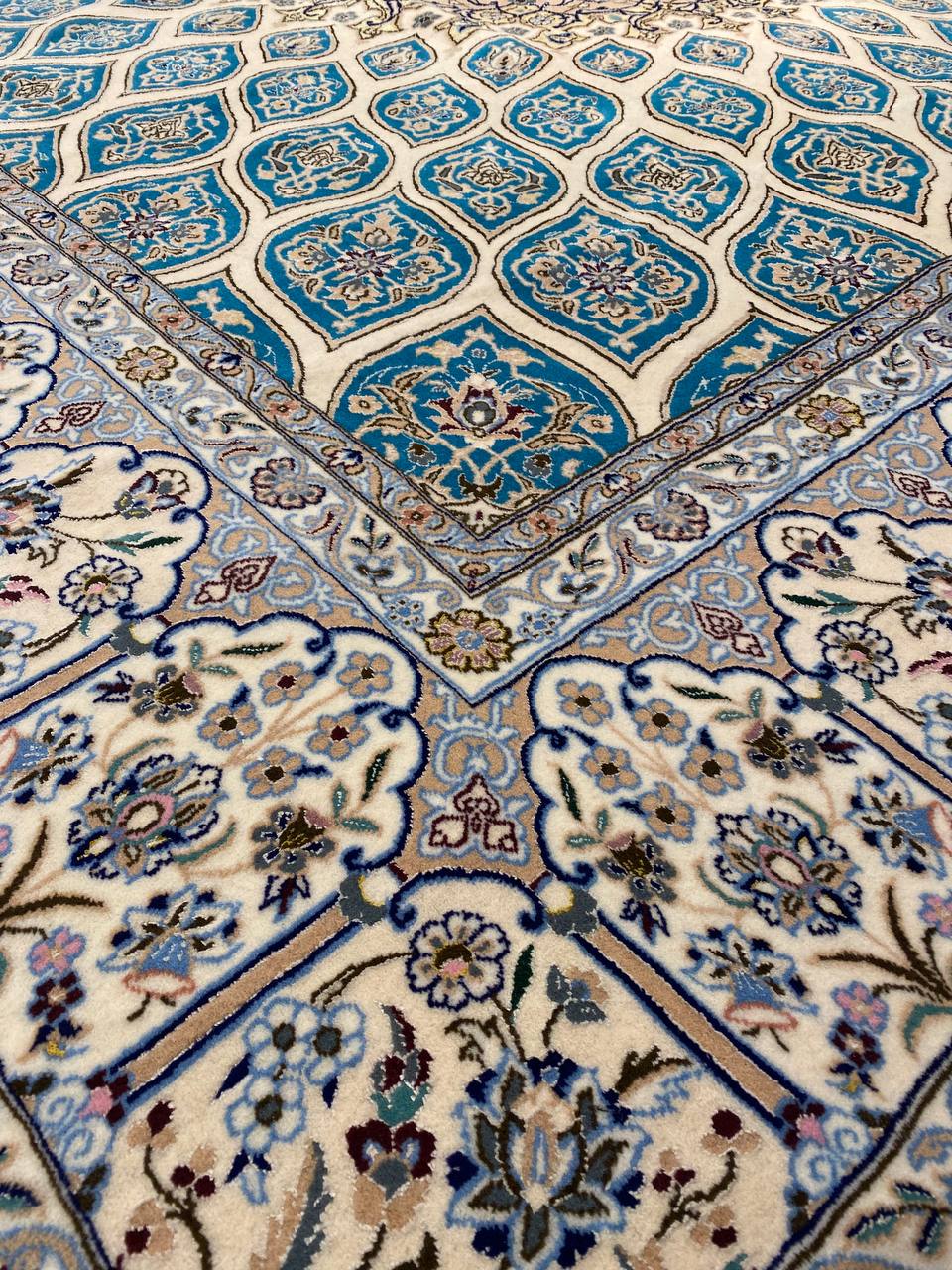 Original Super Fine Persian NAIN Handmade Hand-knotted Silk and Wool Pile on a Cotton Foundation 9 Line Hand-Spun Wool Rug Vegetable Dyed This rug has a dense, soft pile, and excellent quality, to ensure that you will enjoy the look and feel of your rug for years to come