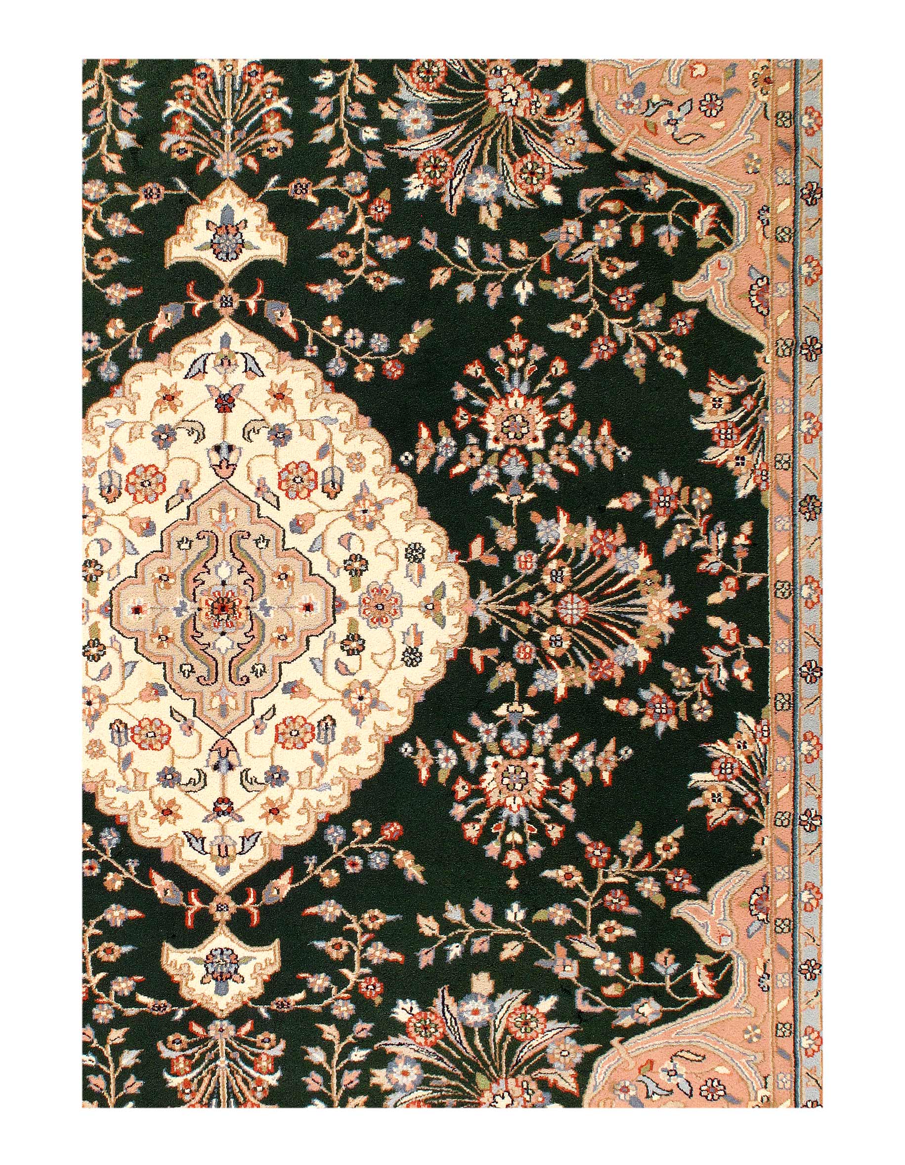 Persian Tabriz handmade Lamb's Wool rug on a cotton foundation with a medallion square motif. HERIZ Design. Hand-Spun Wool Rug Vegetable Dyed This rug has a dense, soft pile, and excellent quality, to ensure that you will enjoy the look and feel of your rug for years to come.