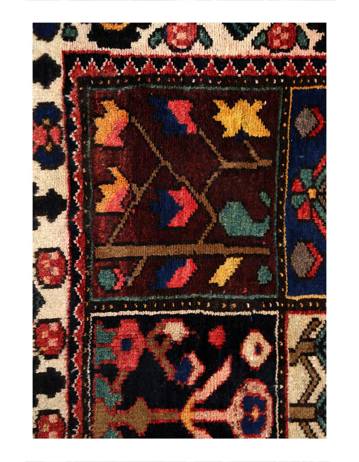 Offered is a gorgeous Antique Persian Bakhtiari area rug is a luxurious hand-knotted pile is made from very fine lamb's wool and features a traditional Bakhtiari motif throughout. Handmade hand-knotted lamb's wool on a cotton foundation.