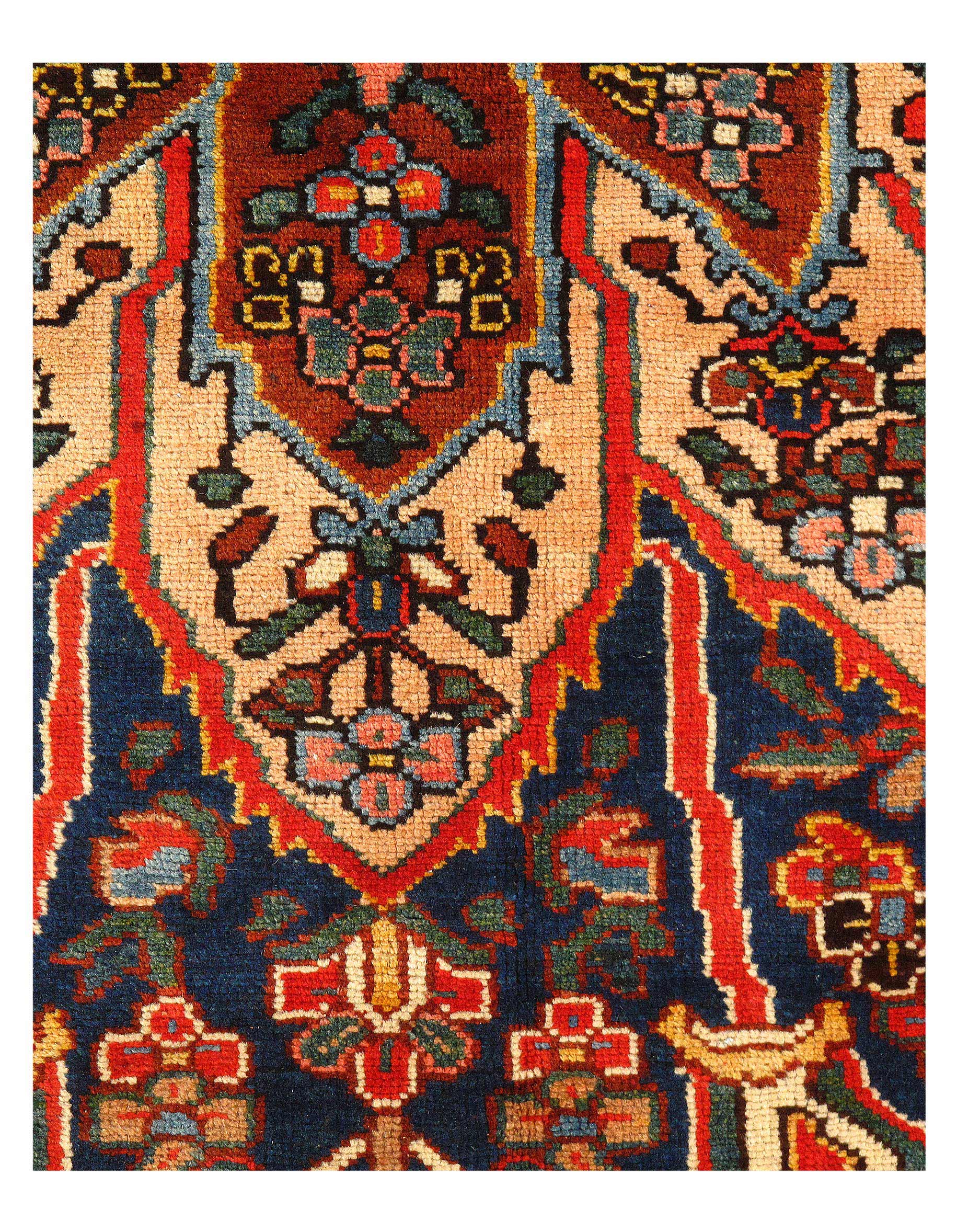 Offered is a gorgeous Persian Bakhtiari area rug. The luxurious hand-knotted pile is made from very fine lamb's wool and features a traditional Bakhtiari motif throughout. Handmade hand-knotted lamb's wool on a cotton foundation.