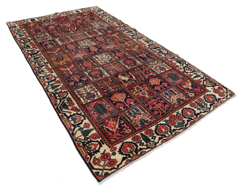 Offered is a gorgeous Persian Bakhtiari area rug. The luxurious hand-knotted pile is made from very fine lamb's wool and features a traditional Bakhtiari motif throughout. Handmade hand-knotted lamb's wool on a cotton foundation.
