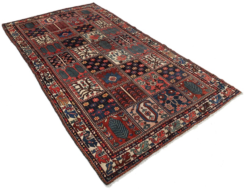 Offered is a gorgeous Persian Bakhtiari area rug. The luxurious hand-knotted pile is made from very fine lamb's wool and features a traditional Bakhtiari motif throughout. Handmade hand-knotted lamb's wool on a cotton foundation.