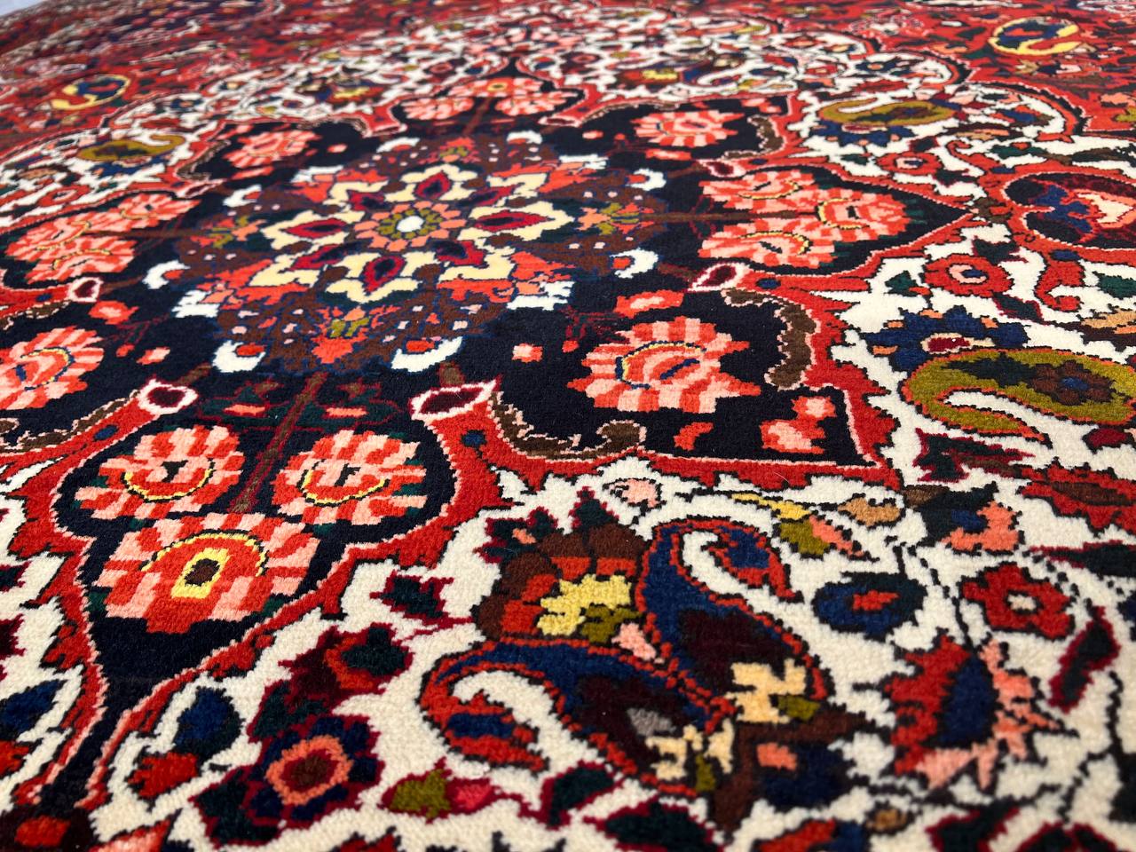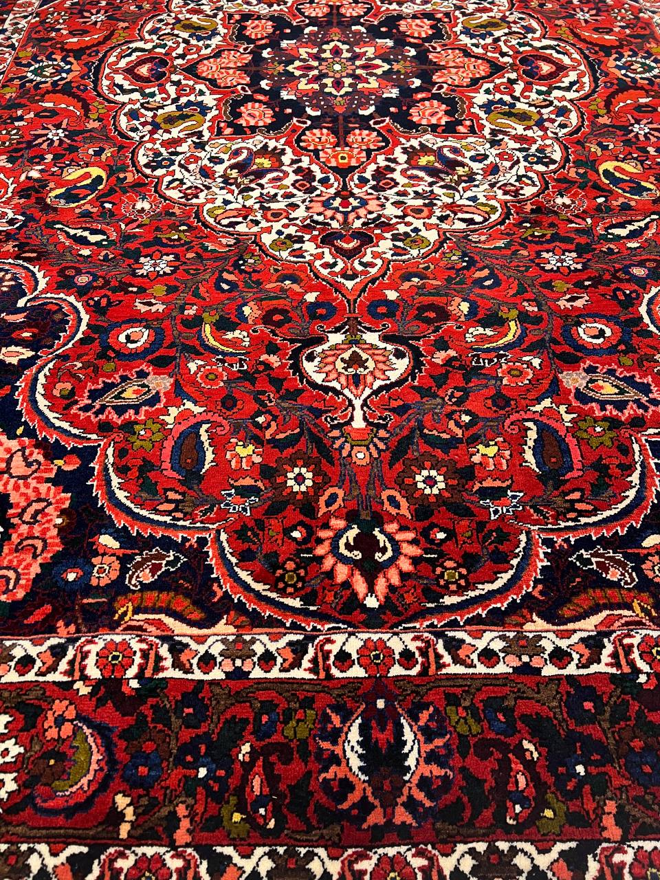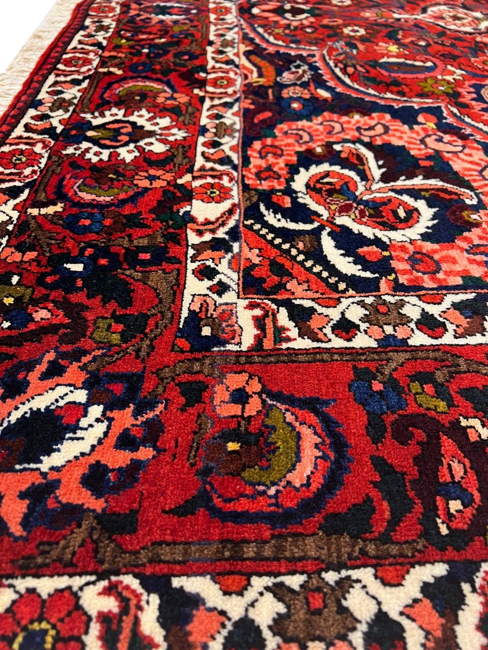 Offered is a gorgeous Persian Bakhtiari area rug. The luxurious hand-knotted pile is made from very fine lamb's wool and features a traditional Bakhtiari motif throughout. Handmade hand-knotted lamb's wool on a cotton foundation.