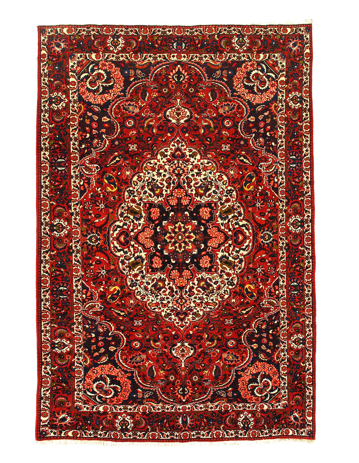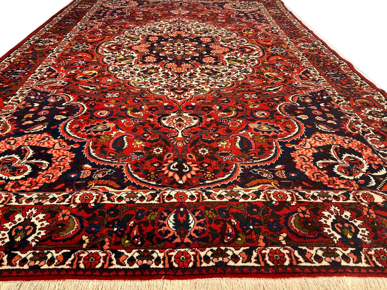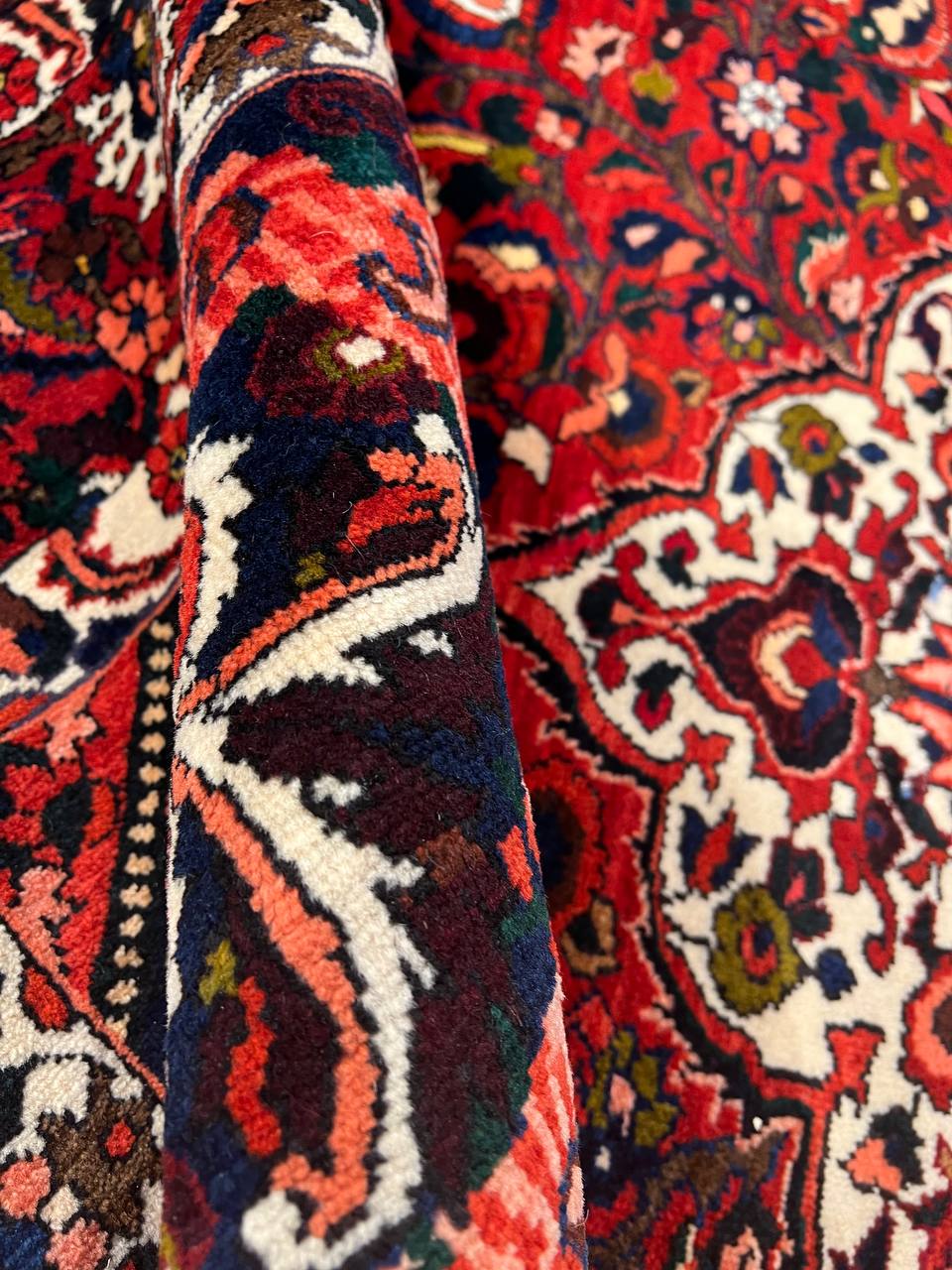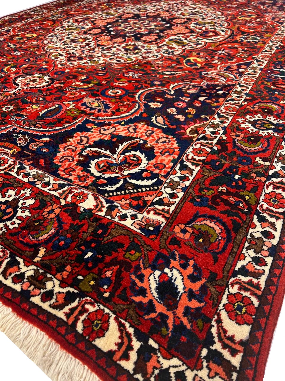 Offered is a gorgeous Persian Bakhtiari area rug. The luxurious hand-knotted pile is made from very fine lamb's wool and features a traditional Bakhtiari motif throughout. Handmade hand-knotted lamb's wool on a cotton foundation.