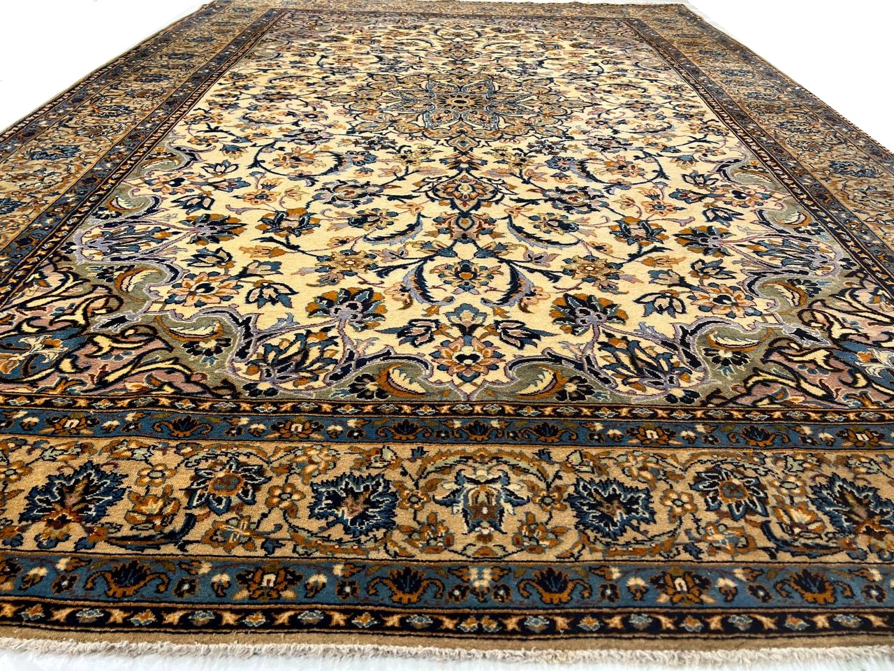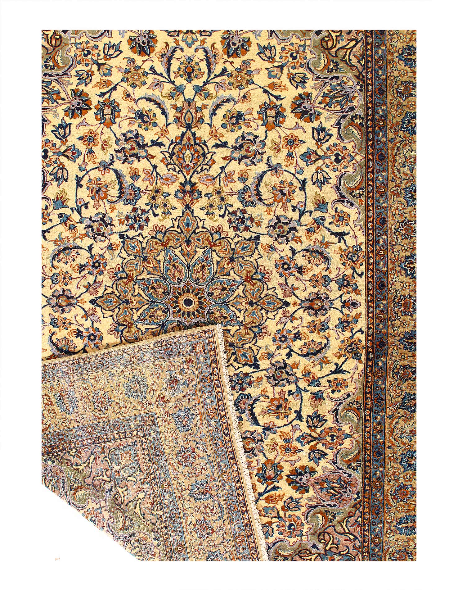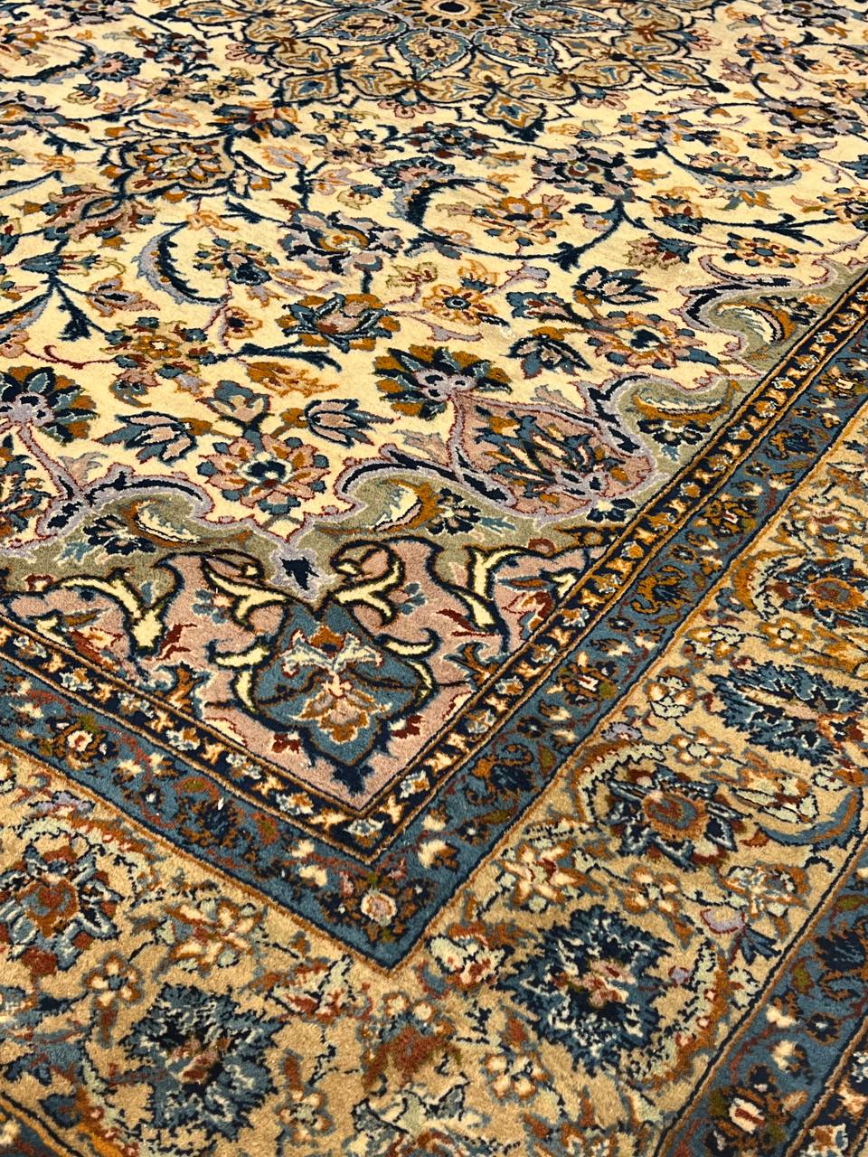 Original Persian KASHAN Handmade Hand-Knotted Lamb's Wool on a Cotton Foundation Hand-Spun Wool Rug Allover Vegetable Dyed This rug is handmade from 100-percent premium, hand-spun wool, and employ ancient pot-dying techniques to give them their authentic look.