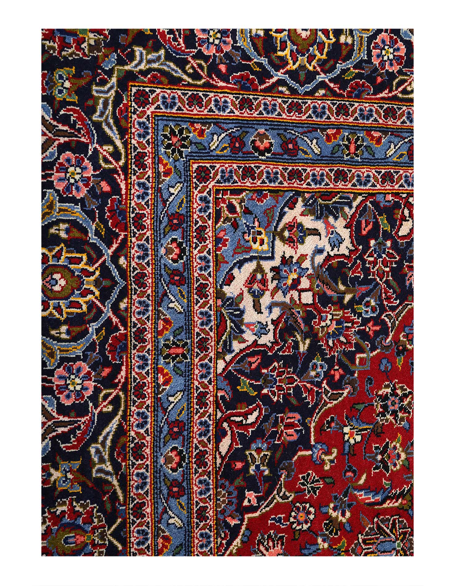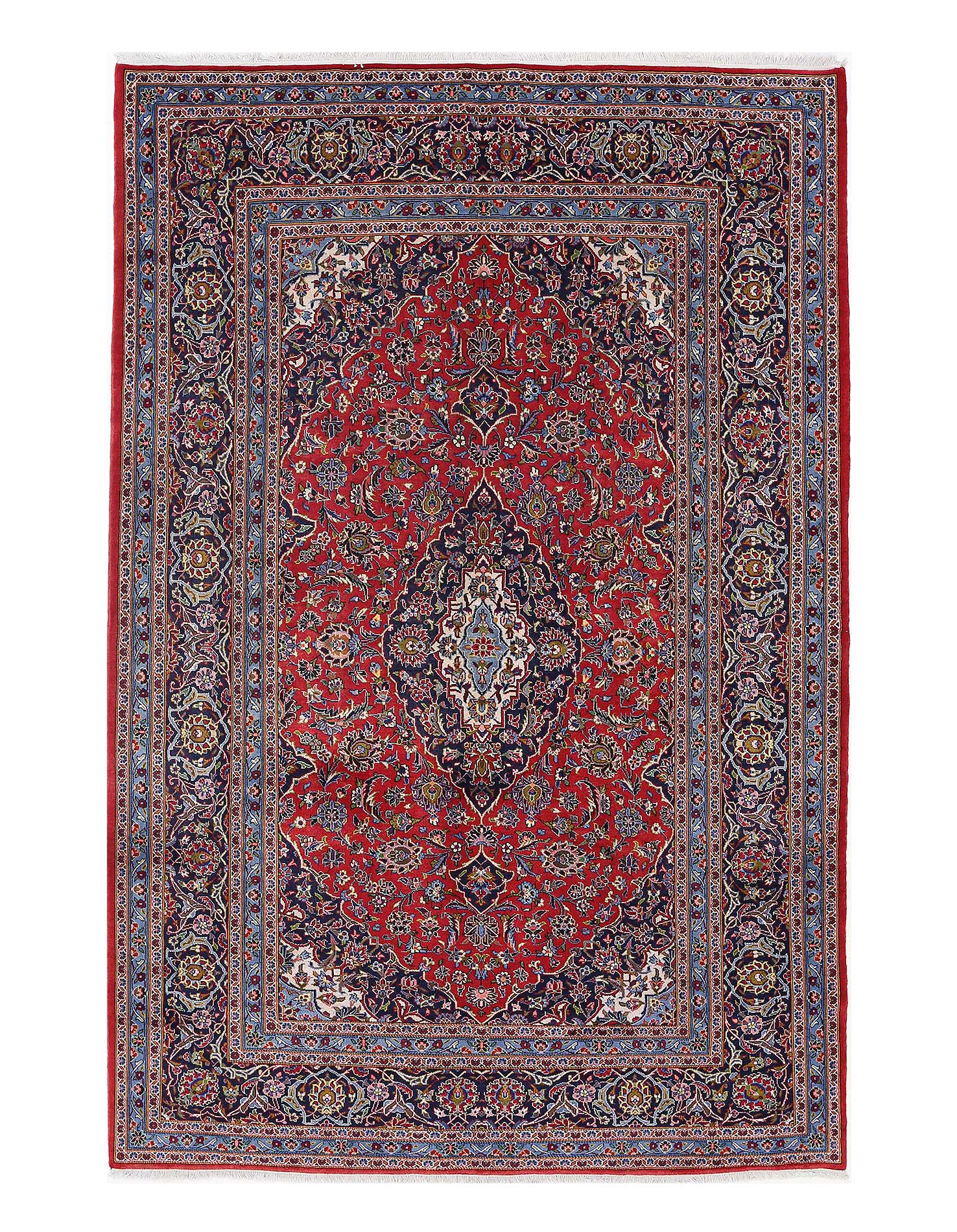 Original Persian KASHAN Handmade Hand-Knotted Lamb's Wool on a Cotton Foundation Hand-Spun Wool Rug Allover Vegetable Dyed This rug is handmade from 100-percent premium, hand-spun wool, and employ ancient pot-dying techniques to give them their authentic look.