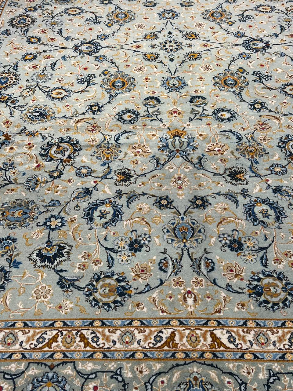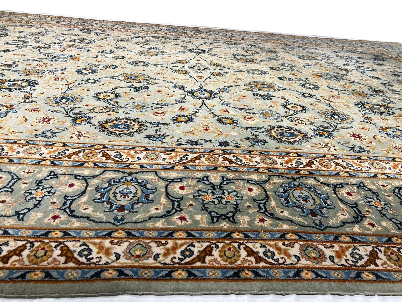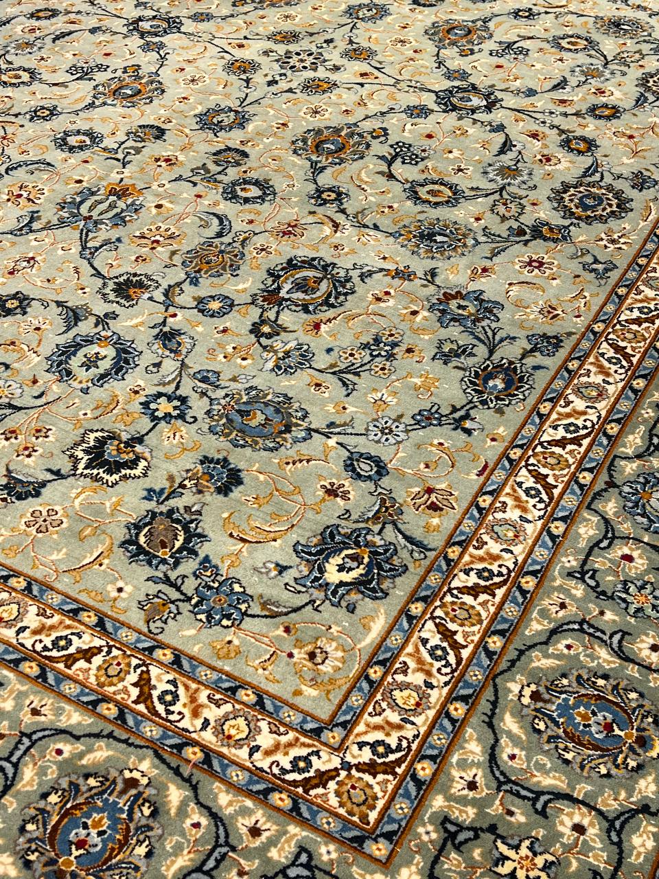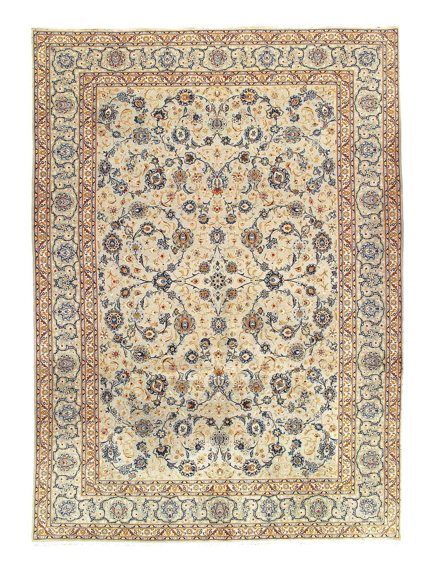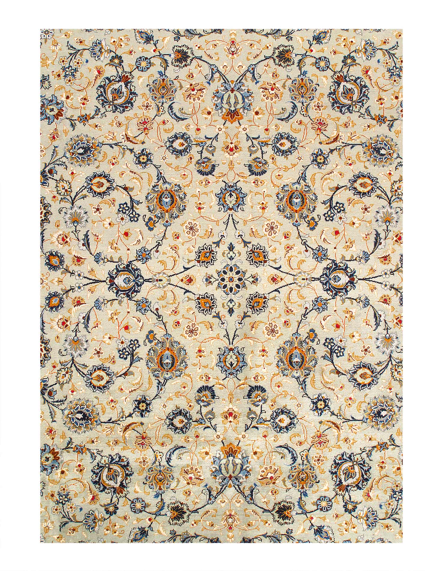 Persian Kashan hand-knotted rug. Lamb's Wool on a Cotton Foundation Classic All over design Made of a fine wool in Persia. This rug has a dense, soft pile, and excellent quality, to ensure that you will enjoy the look and feel of your rug for years to come.