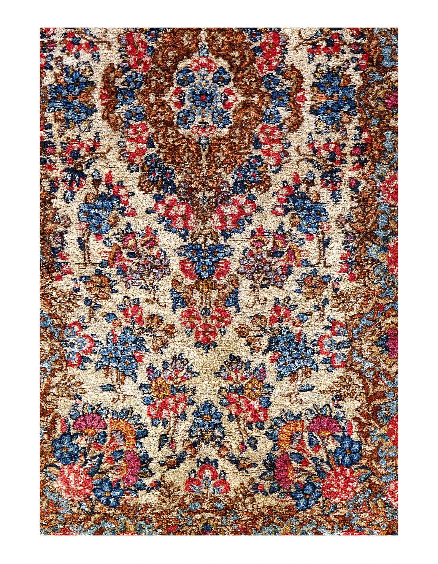 Kerman is an ancient city, with an incredible history going back over a thousand years. Marco Polo was one of the first westerners to view Kerman rugs. The city is located in the central south-eastern section of Iran, in the province that bears its name. Kerman rugs and carpets are perhaps one of the most recognizable within the antique Persian rug category. A typical pattern for Kerman rugs and carpets is a floral or architectural theme in the main border with a central medallion in the field. Other patterns include the finer Kerman Lavar style with garden, tree-of-life, vase, and all-over mille fleur designs, or the many pictorials which tell the story of a significant figure or event in history. The vase design carpets originated during the Safavid dynasty, and are among the greatest masterpieces of Persian weaving.