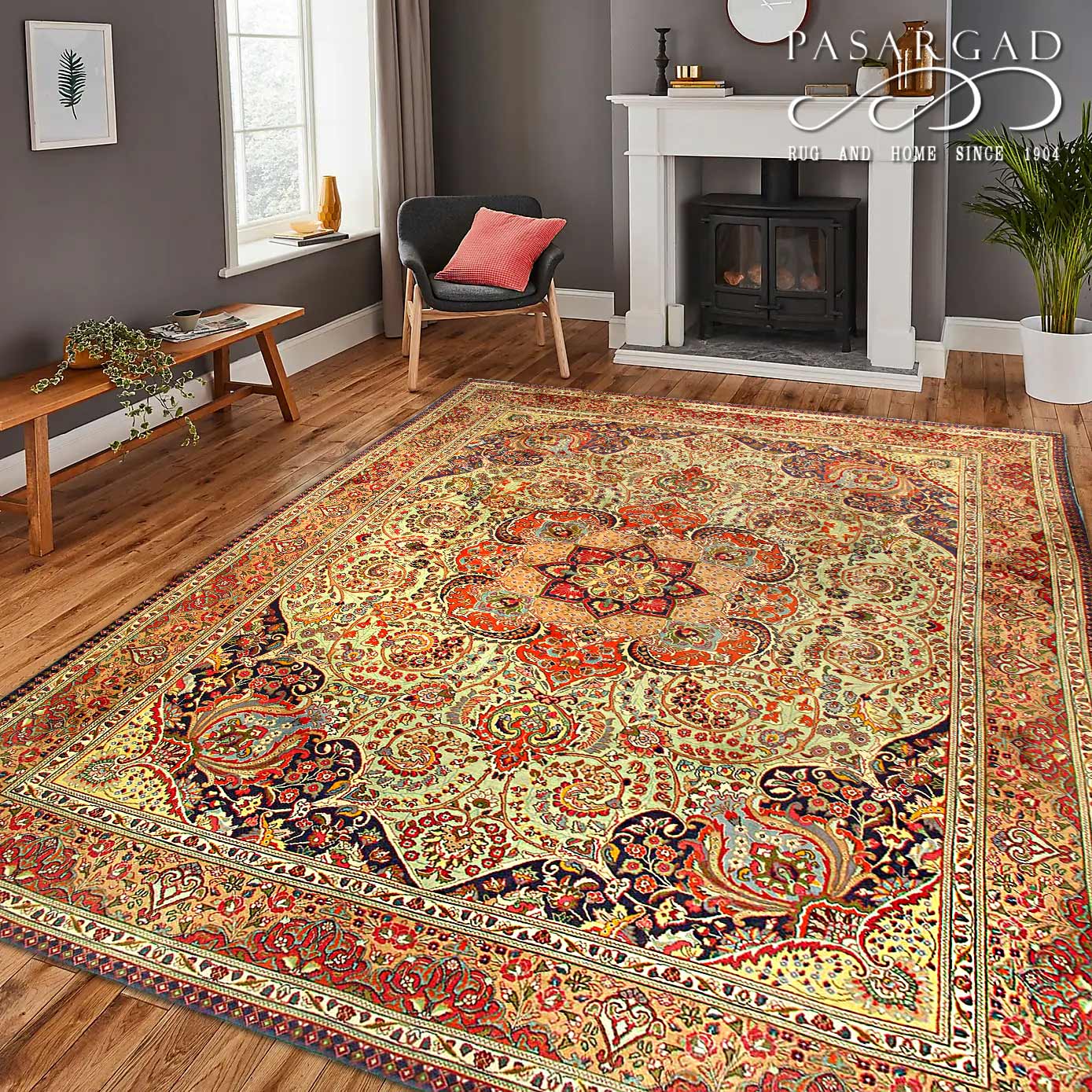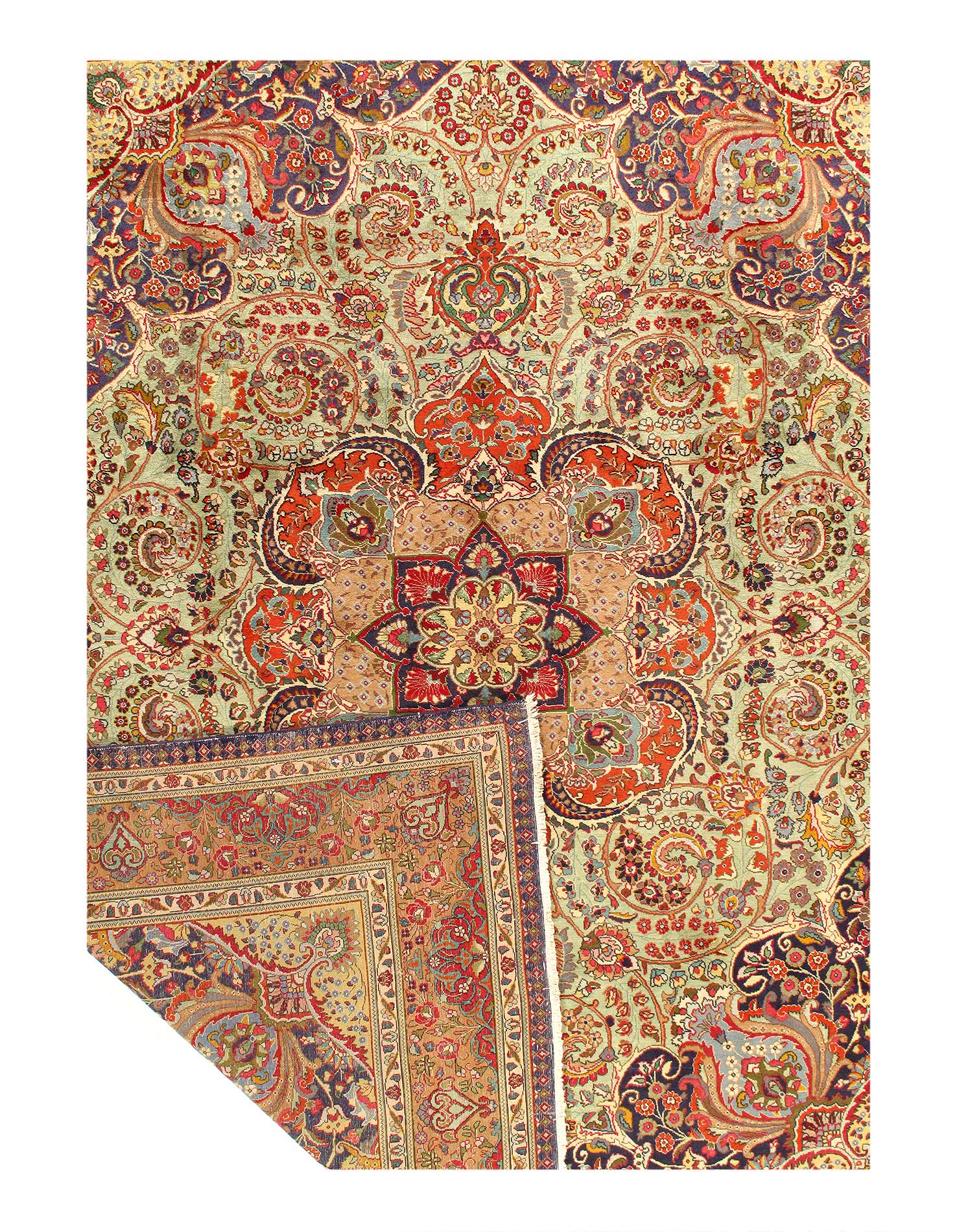 During the great revival of rug weaving in the nineteenth century Tabriz still had its master rug weavers designers like the famed Haji Jalili. Given this long and distinguished tradition, it comes as no surprise that no other Persian center of rug weaving can demonstrate such a wide range of designs or pattern types. The Tabriz design repertory is in fact so varied and extensive, that its products cannot be identified according to the rug’s design pattern or motif, but rather through the distinctive combination of refined classical Persian motifs with a preference for symmetrical knotting, extra wefts, and dyed warps.