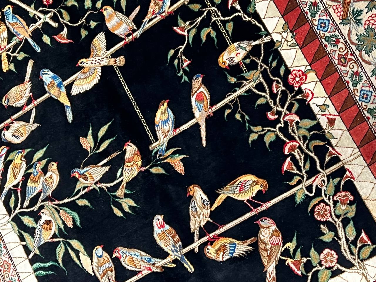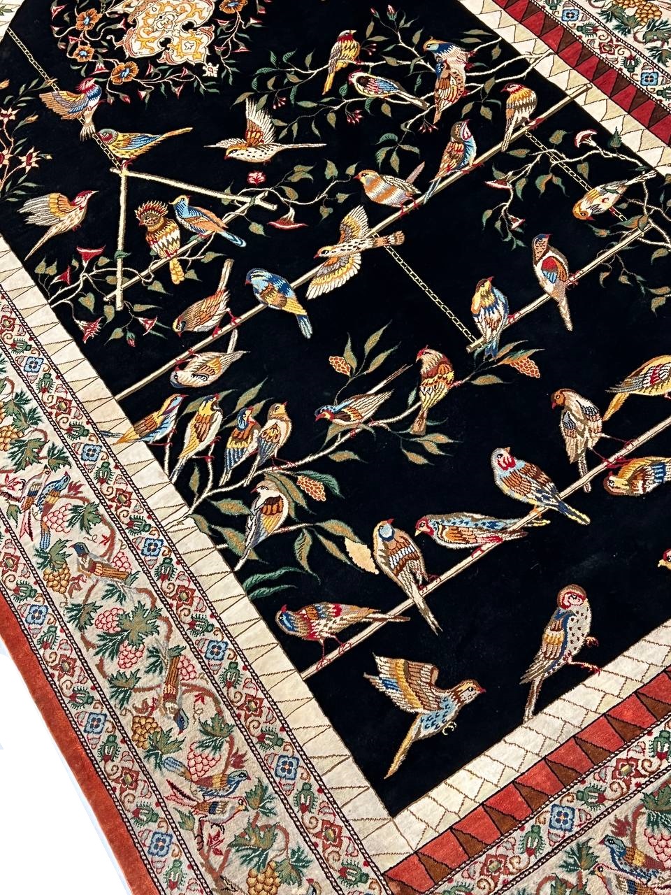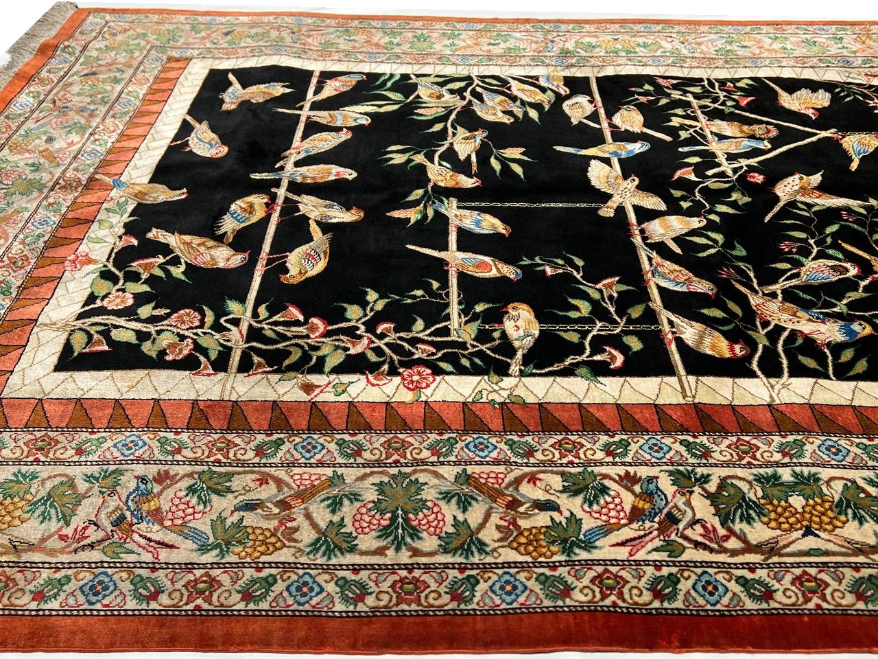 This beautiful master piece Persian Rug is pure silk and weaved in the city called Qum, Qum is a holly city in Iran and it is known for it's silk rugs around the world. The city is located in the central northern part of IRAN and has very dry weather very close to the capital city. Qum Silk are among the best known and most expensive silk rug around the world. All the Qum Silk rug are weaved by using a single knot techniques.