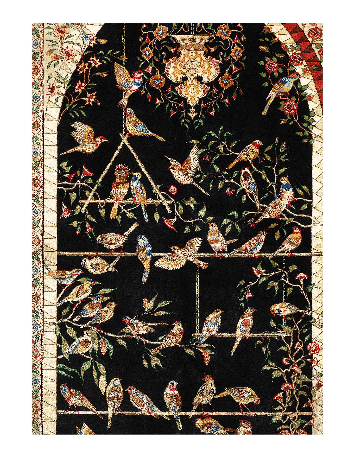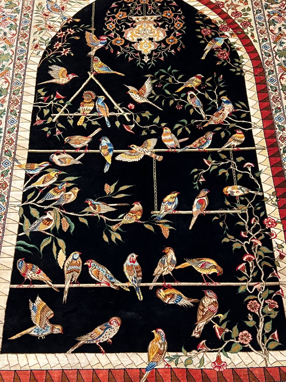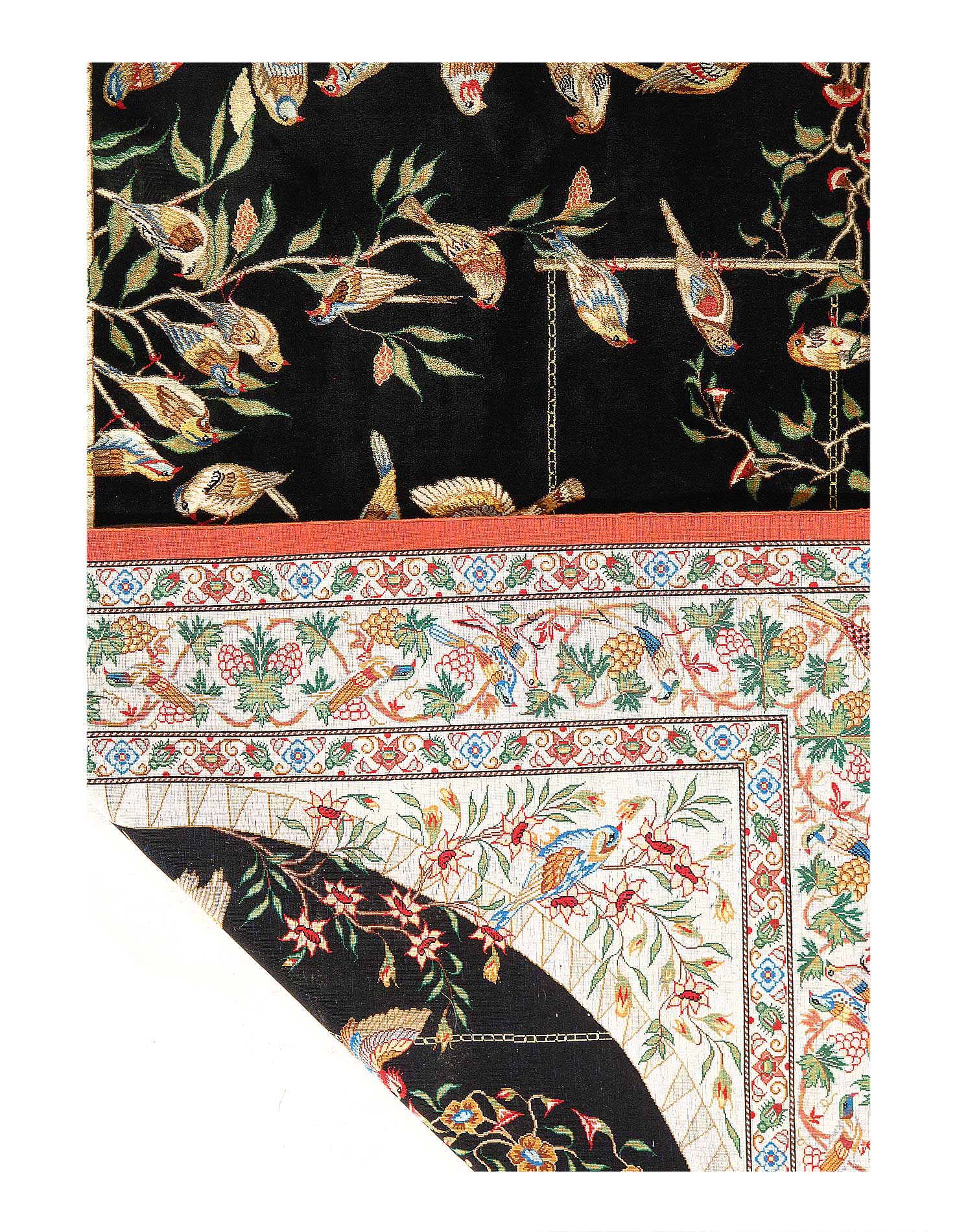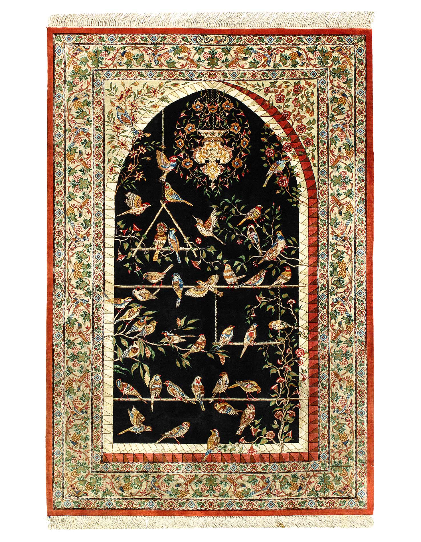 This beautiful master piece Persian Rug is pure silk and weaved in the city called Qum, Qum is a holly city in Iran and it is known for it's silk rugs around the world. The city is located in the central northern part of IRAN and has very dry weather very close to the capital city. Qum Silk are among the best known and most expensive silk rug around the world. All the Qum Silk rug are weaved by using a single knot techniques.