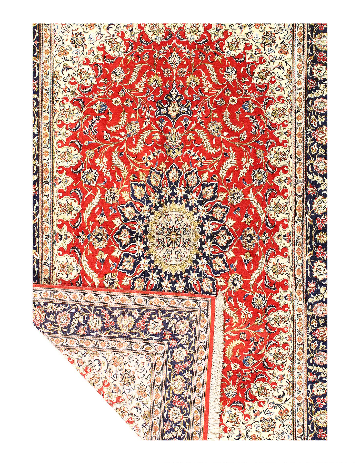 his amazing master piece Persian Rug is weaved in the city called Qum with 100% silk. Qum is a holly city in Iran and it is known for it's silk rugs around the world. Qum(Qom) Silk rugs are among the best known and most expensive silk rugs around the world. They use a single knot technique when creating a silk rug.Qum Silk rugs intend to keep their value significantly high and keep increasing the value due to the fact that they are not and can't be mass produced. People buy them as an investment the same way they do buy gold back in IRAN