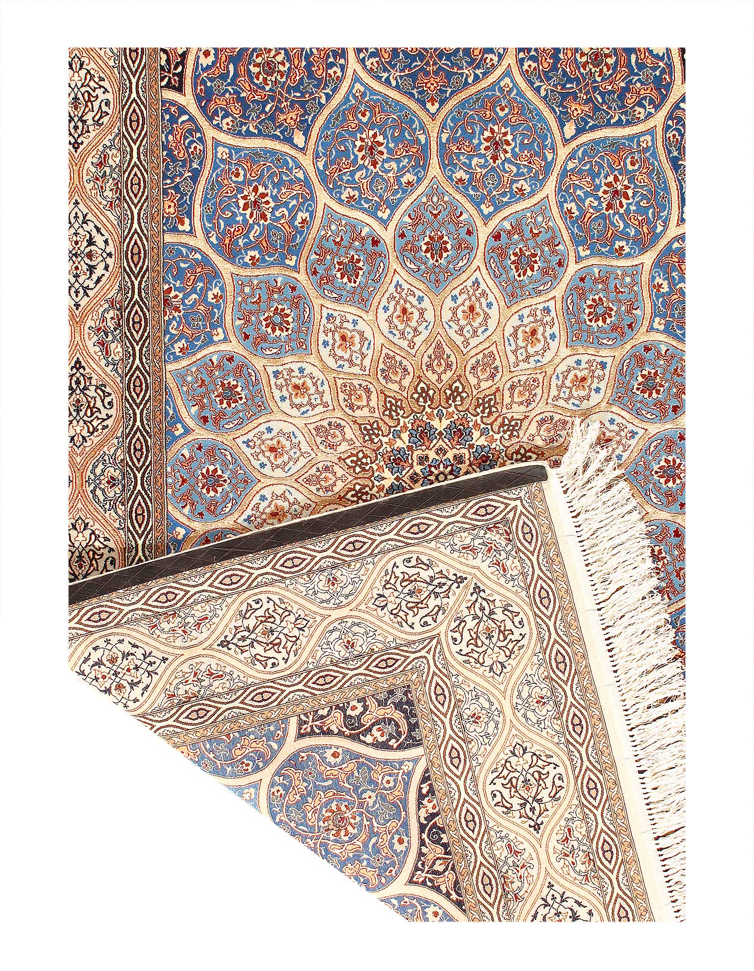 The Isfahan rugs are made with exceptionally good quality of wool & silk. They use traditional motifs inspired by architectural tiles that once decorated the historical buildings from which these rugs originated in. When it comes to high class designs the composition, patterns, and materials of Isfahan meets those expectations. The motifs usually consist of medallions with palmetts and also figural motifs. Isfahan rugs have an extremely high knot density and are woven with silk and golden threads, which give them their luxurious look. signed by Ahmadi