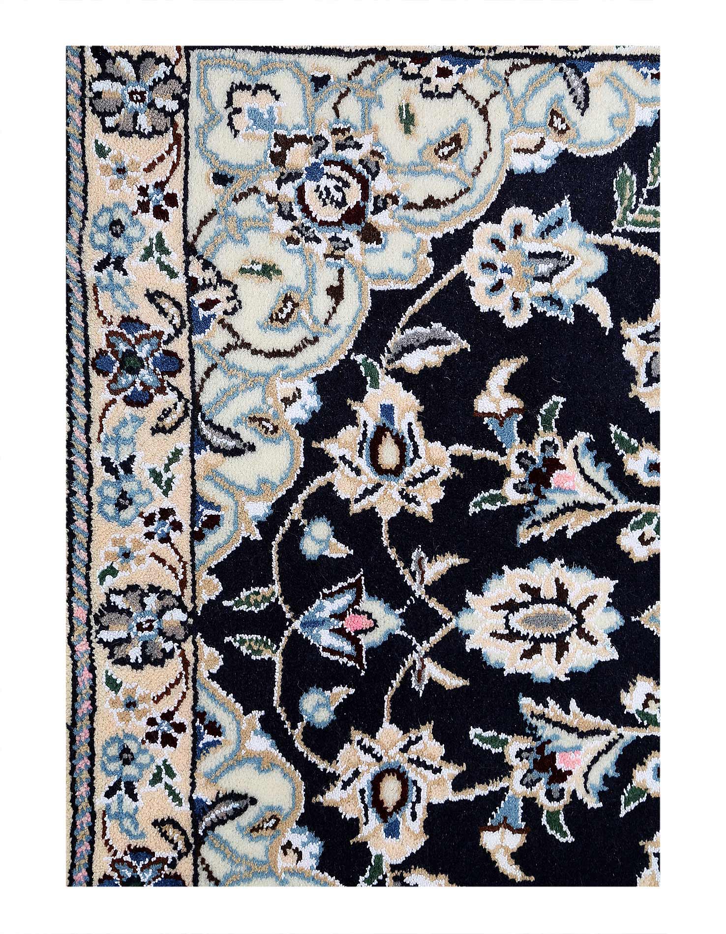 Persian Nain rugs are renowned for their detail and fine use of outlining along the central motifs. Breaking from the classical style of many vintage rugs produced around central Iran, Persian Nain rugs became renowned for their modern appeal and personal style, establishing the classical motifs of many other regional rugs, only through a more precise lens. In this striking piece, the precision is particularly visible along the heart of the vintage Persian rug, where the attention to detail allows each individual color to stand out as a unique part of the whole. The surrounding borders help ground the masterpiece and add horizontal intrigue to the natural elements within, which are arranged vertically to establish a cascading effect.