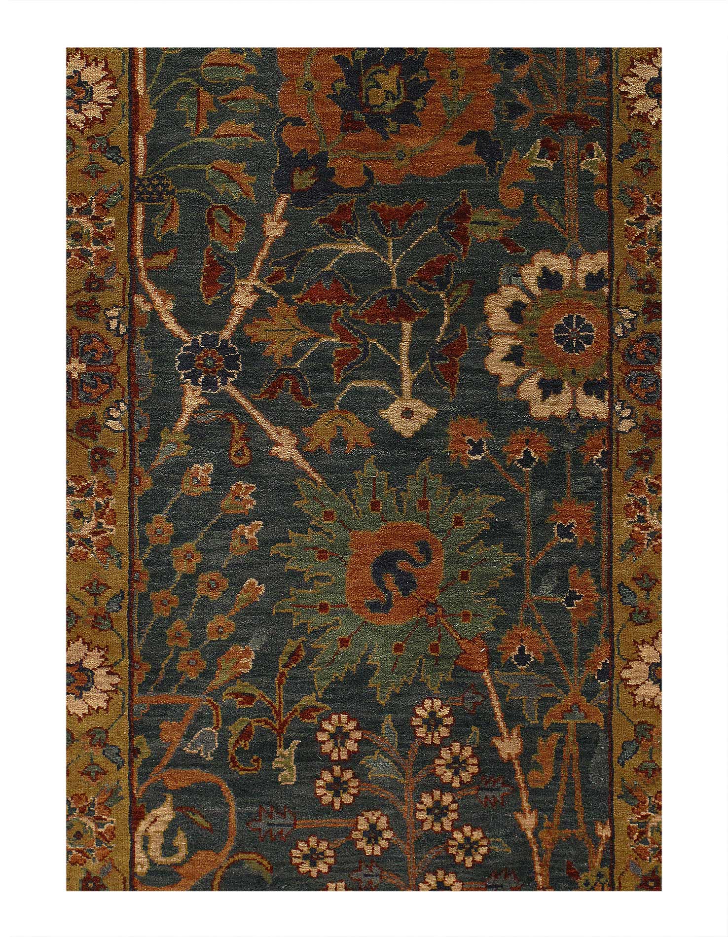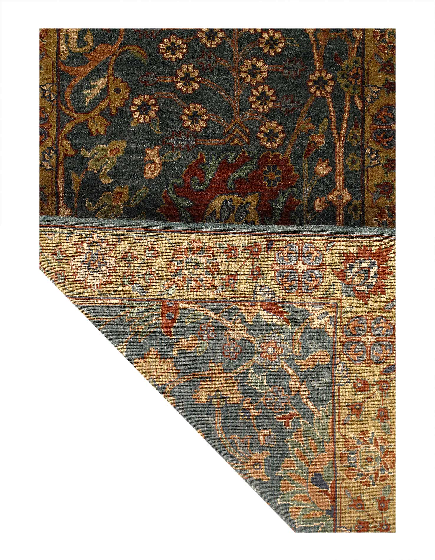 This is a hand-knotted TABRIZ design rug. The piece is made of wool and hand-spun wool from India. This rug has a dense, soft pile, and excellent quality, to ensure that you will enjoy the look and feel of your rug for years to come.#D07697