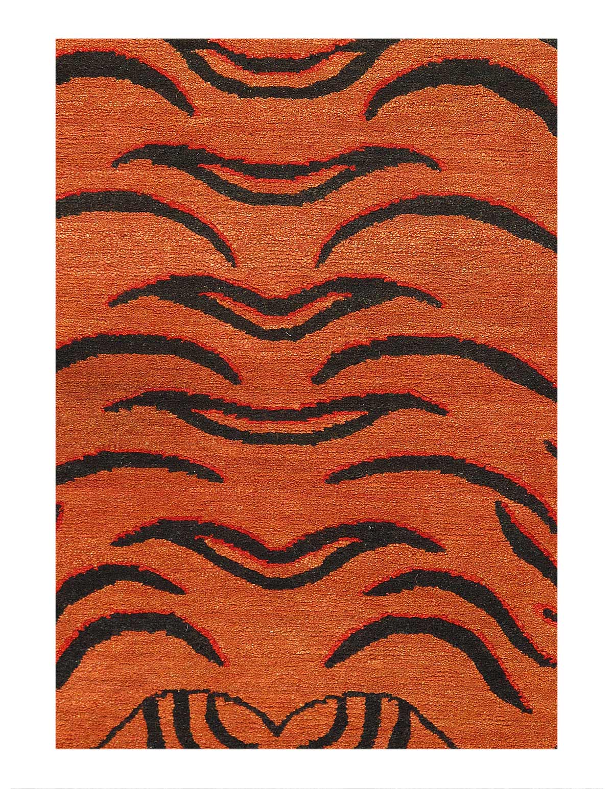 Modern Tibetan Tiger rugs, though named after their Tibetan origins, They are characterized by bold tiger motifs, often depicted in stylized or abstract forms, using vibrant colors like Red, black, white, and gold. These rugs are typically hand-knotted from high-quality wool, ensuring durability and a luxurious feel. The intricate patterns and high knot density contribute to their detailed designs and longevity. They come in various sizes and shapes, fitting diverse interior design needs.